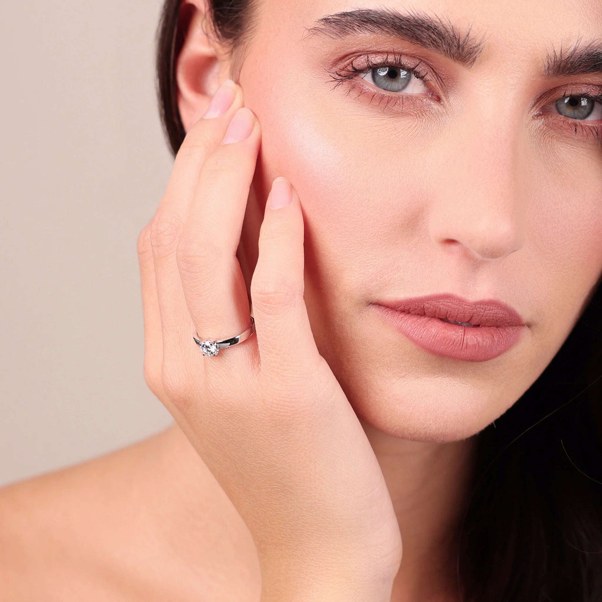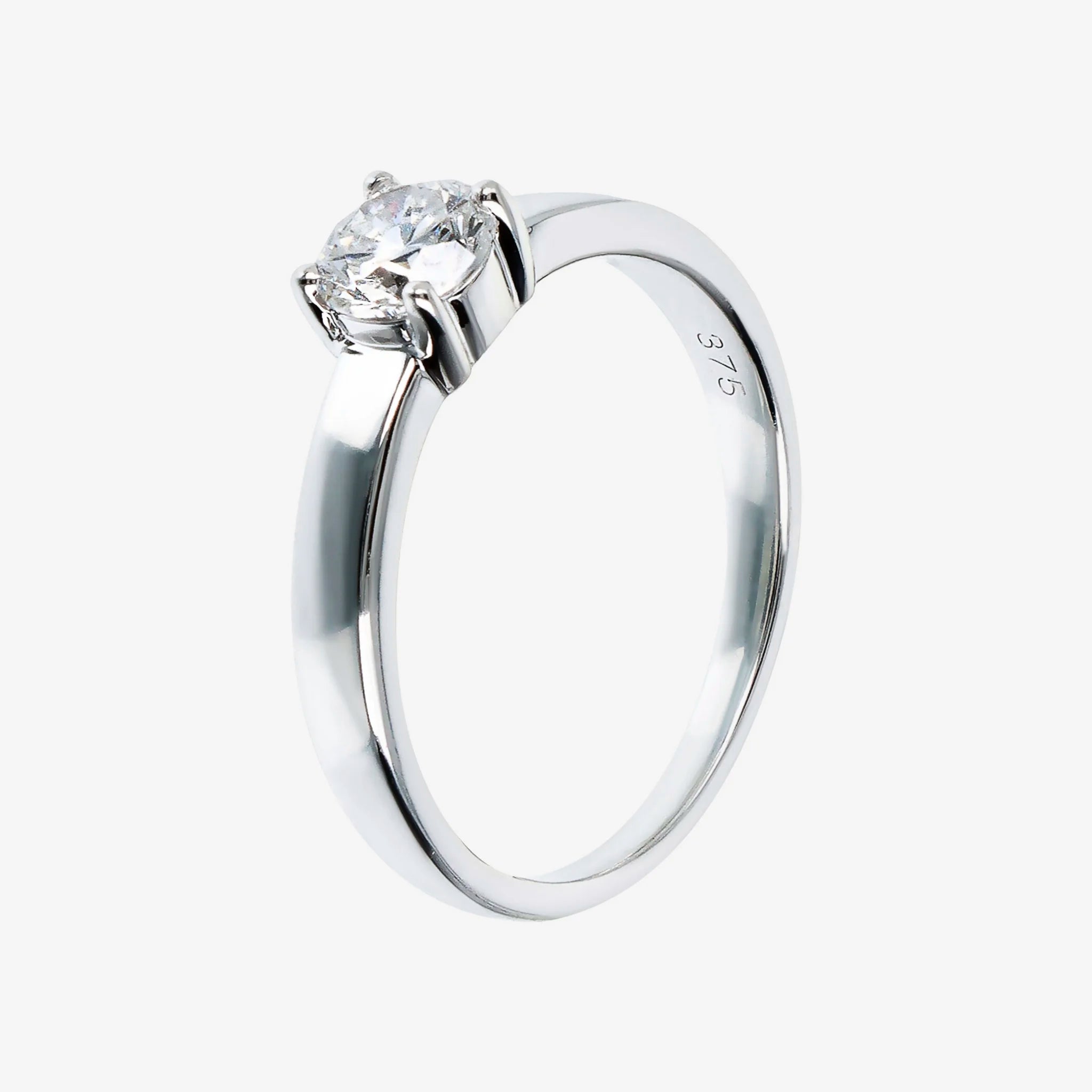 Bague solitaire en or blanc 375 avec diamant cultivé en laboratoire de 0,5 ct