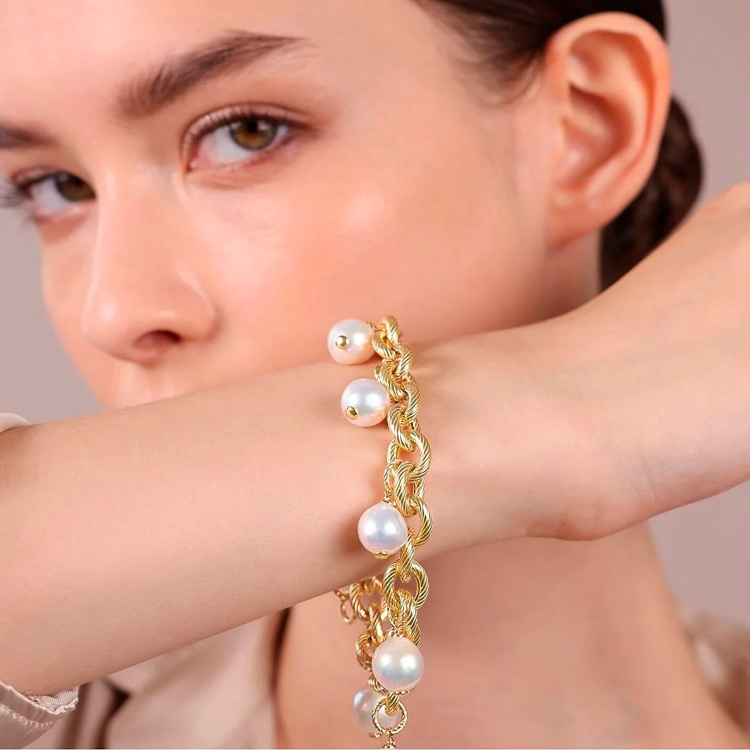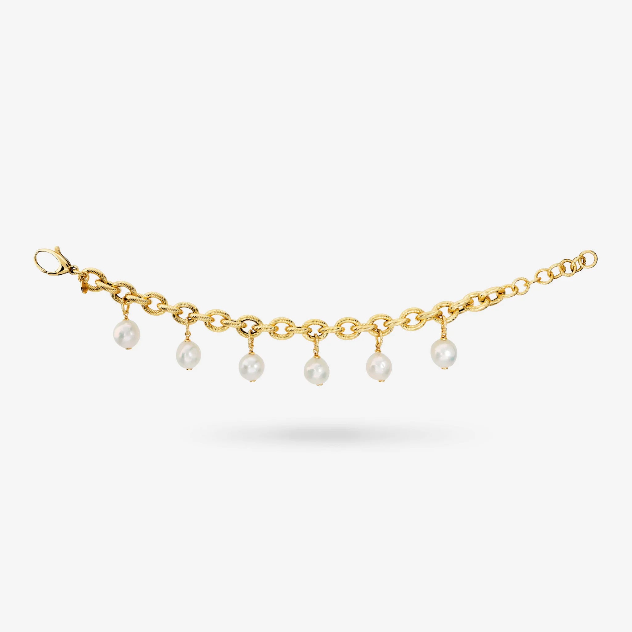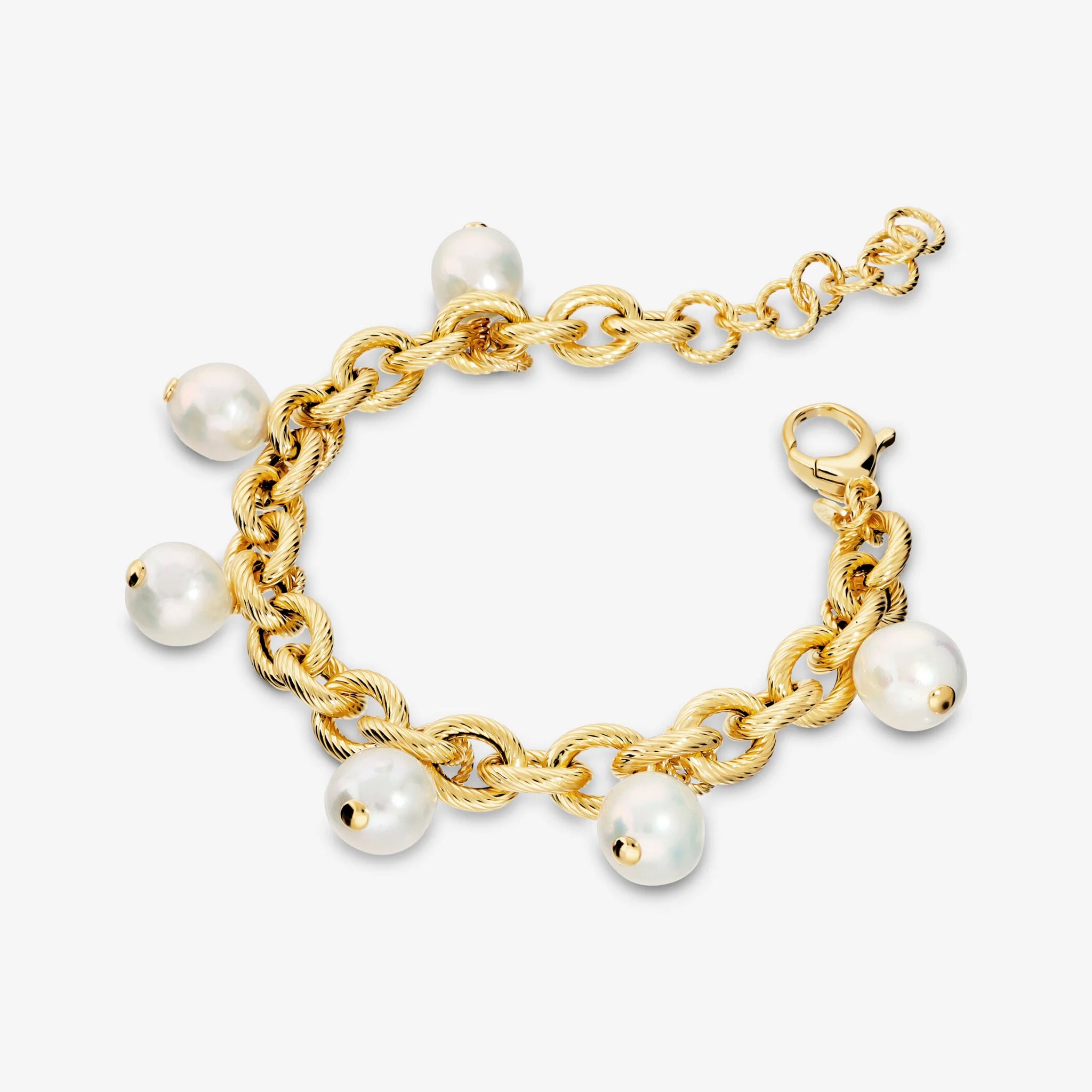 Bracelet Charms avec Perles d'Eau Douce Ming Blanches Ø 10/11 en Argent 925 Plaqué Or Jaune 18Kt