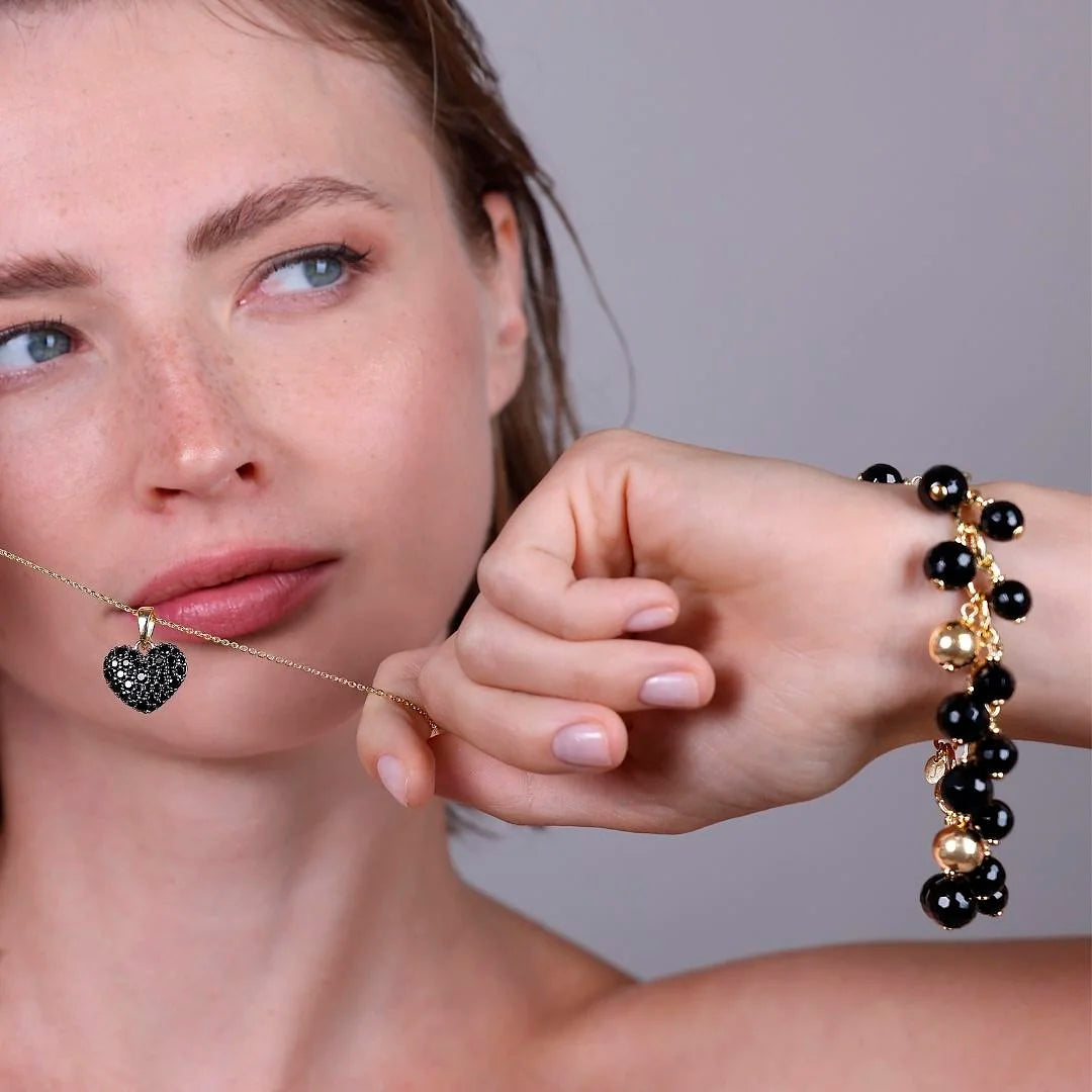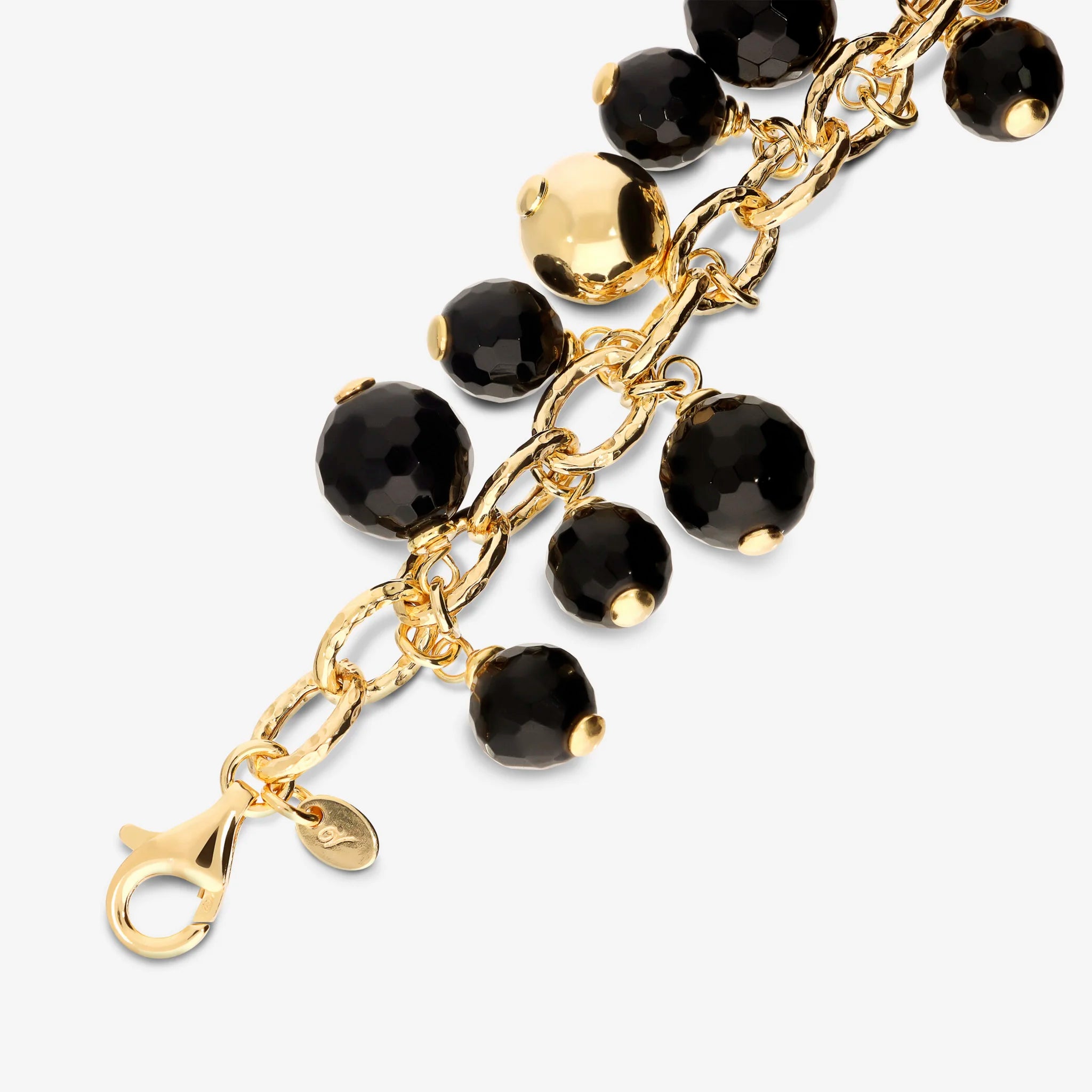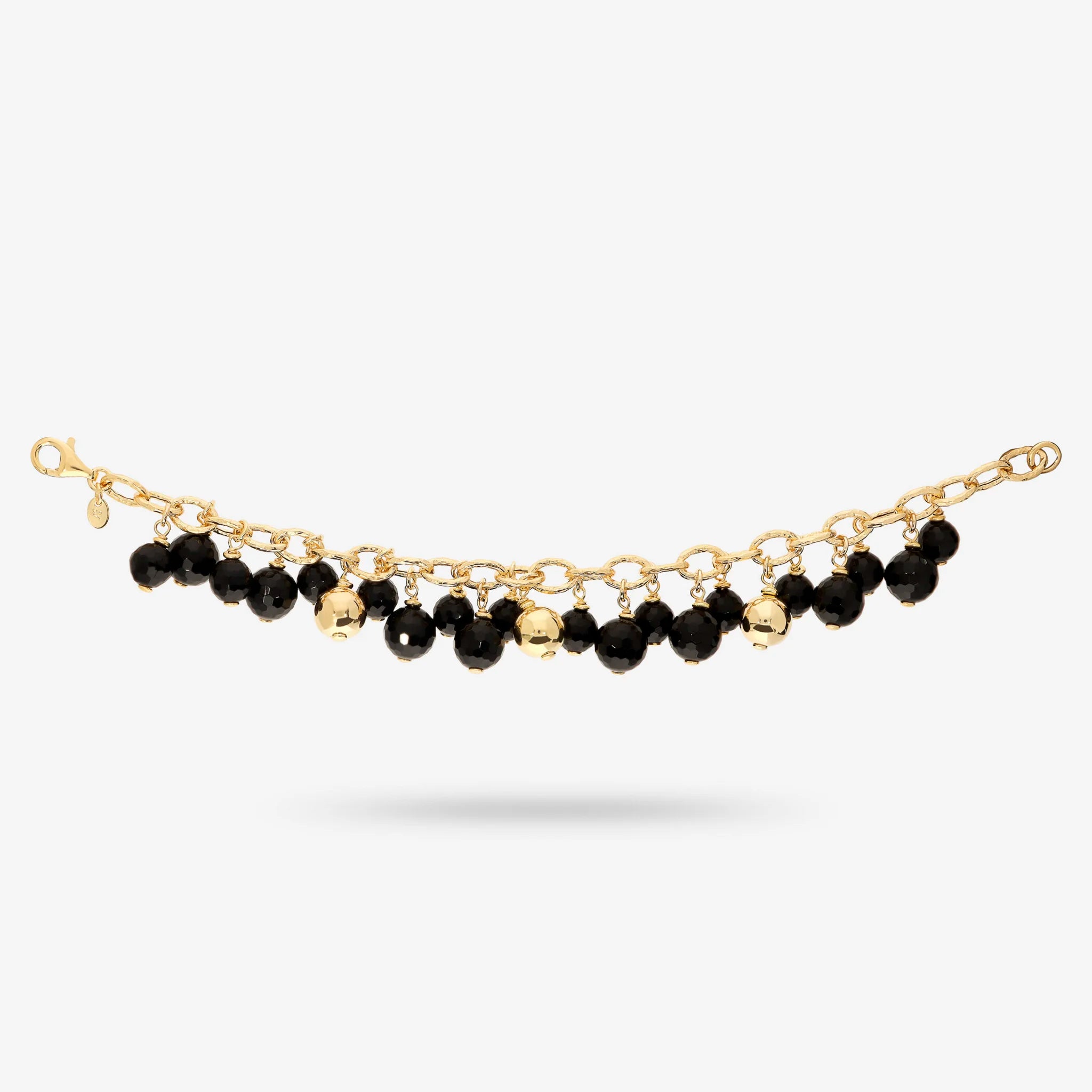 Bracelet avec breloque Onyx noir facetté et perle Lucide en argent 925 plaqué or jaune 18 carats