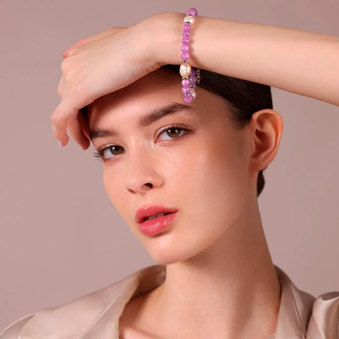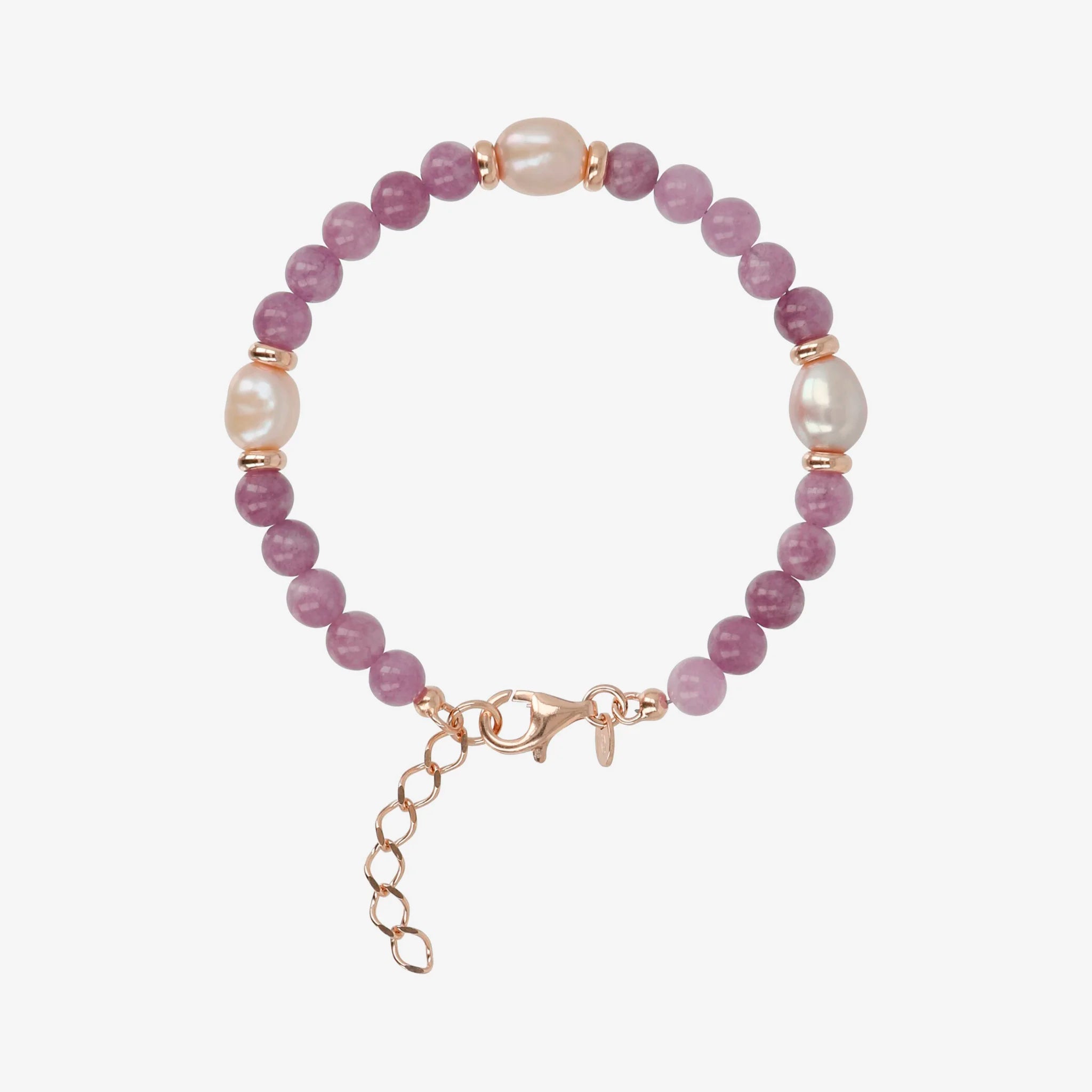Bracelet avec Quartzite Violette et Perles baroques d'eau douce roses Ø 8/9 mm