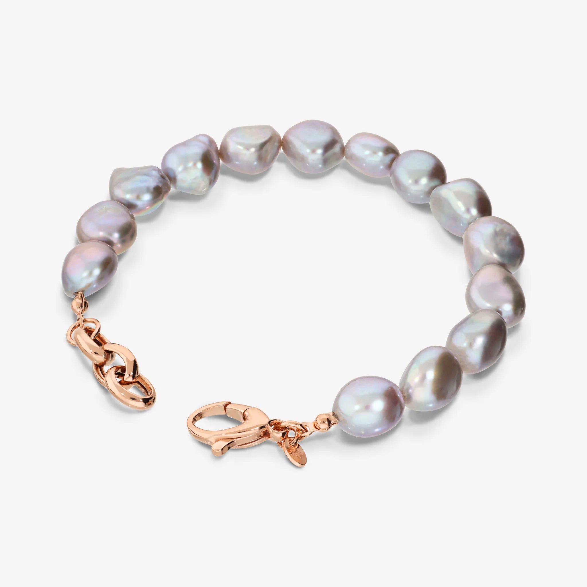 Bracelet en argent 925 plaqué or rose 18Kt avec perles baroques grises d'eau douce Ø 10/11 mm