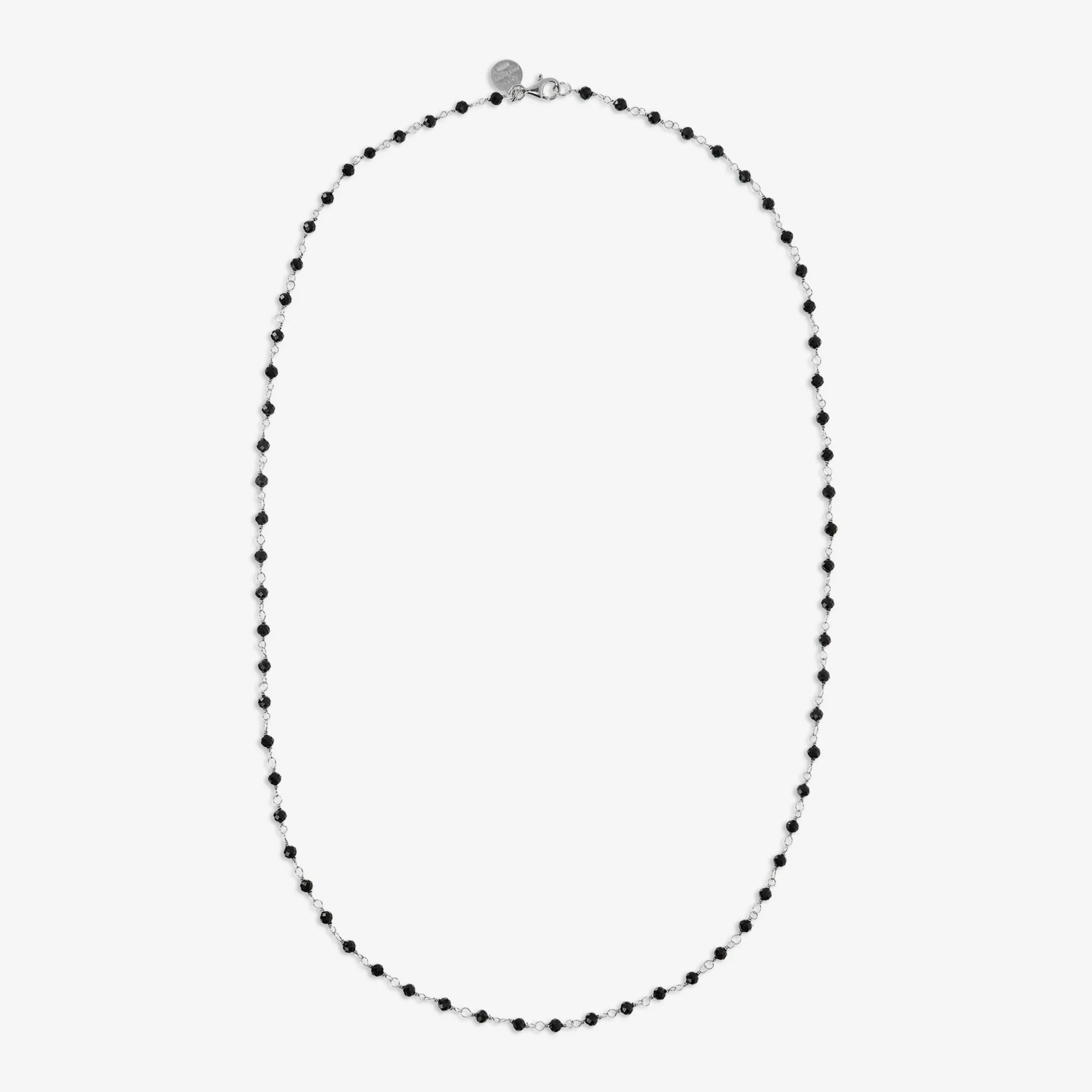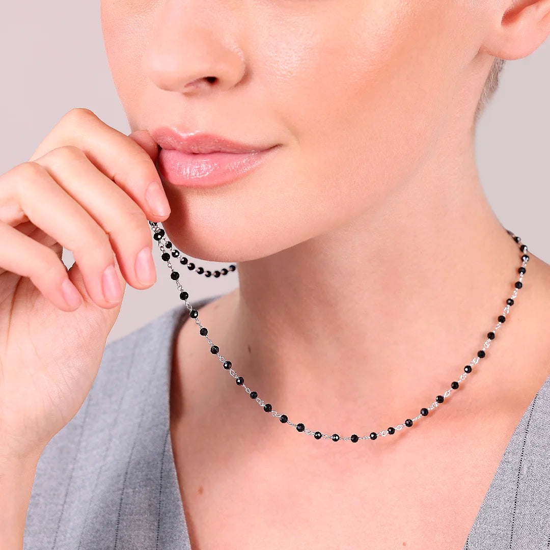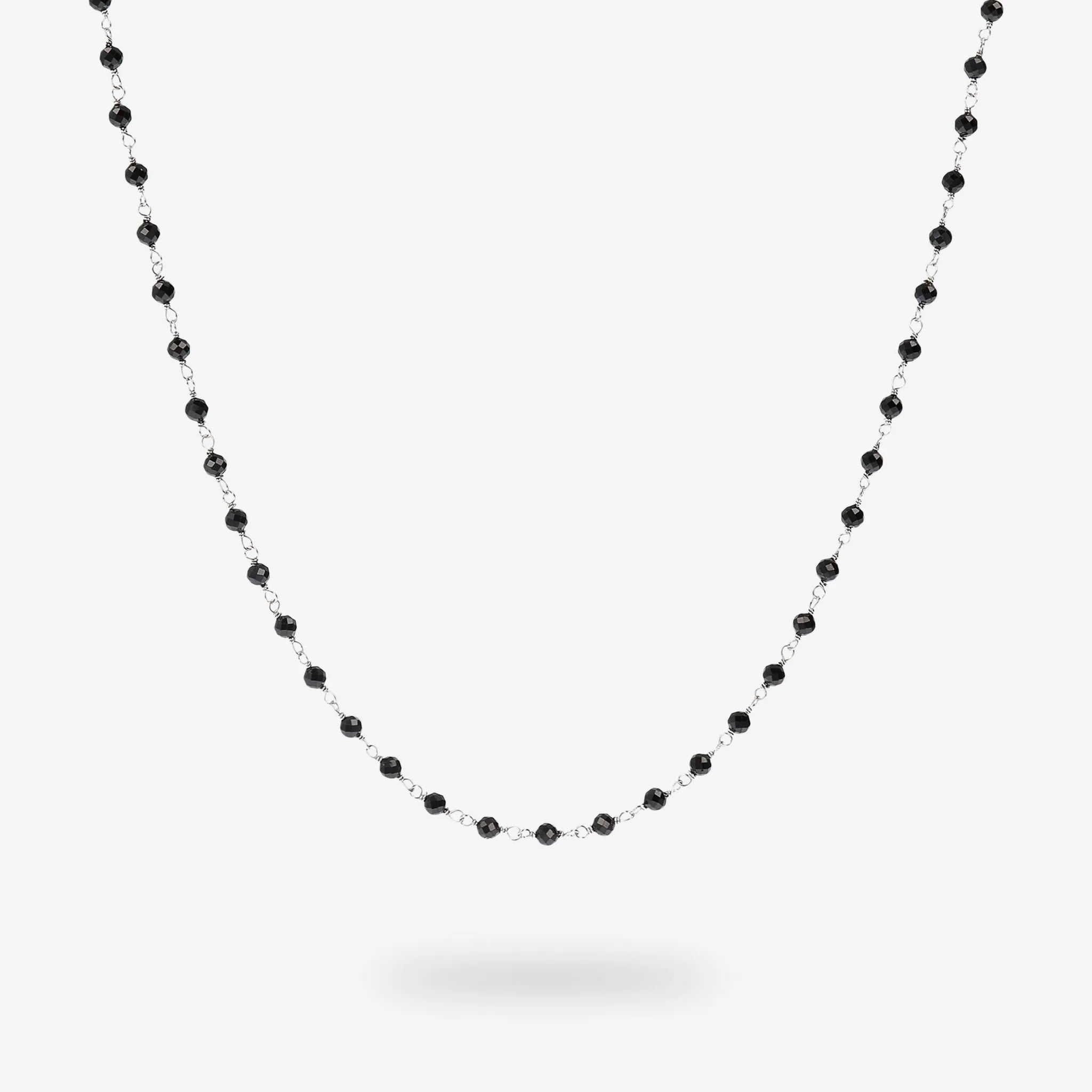 Collier chapelet avec spinelle noire en argent 925 platiné