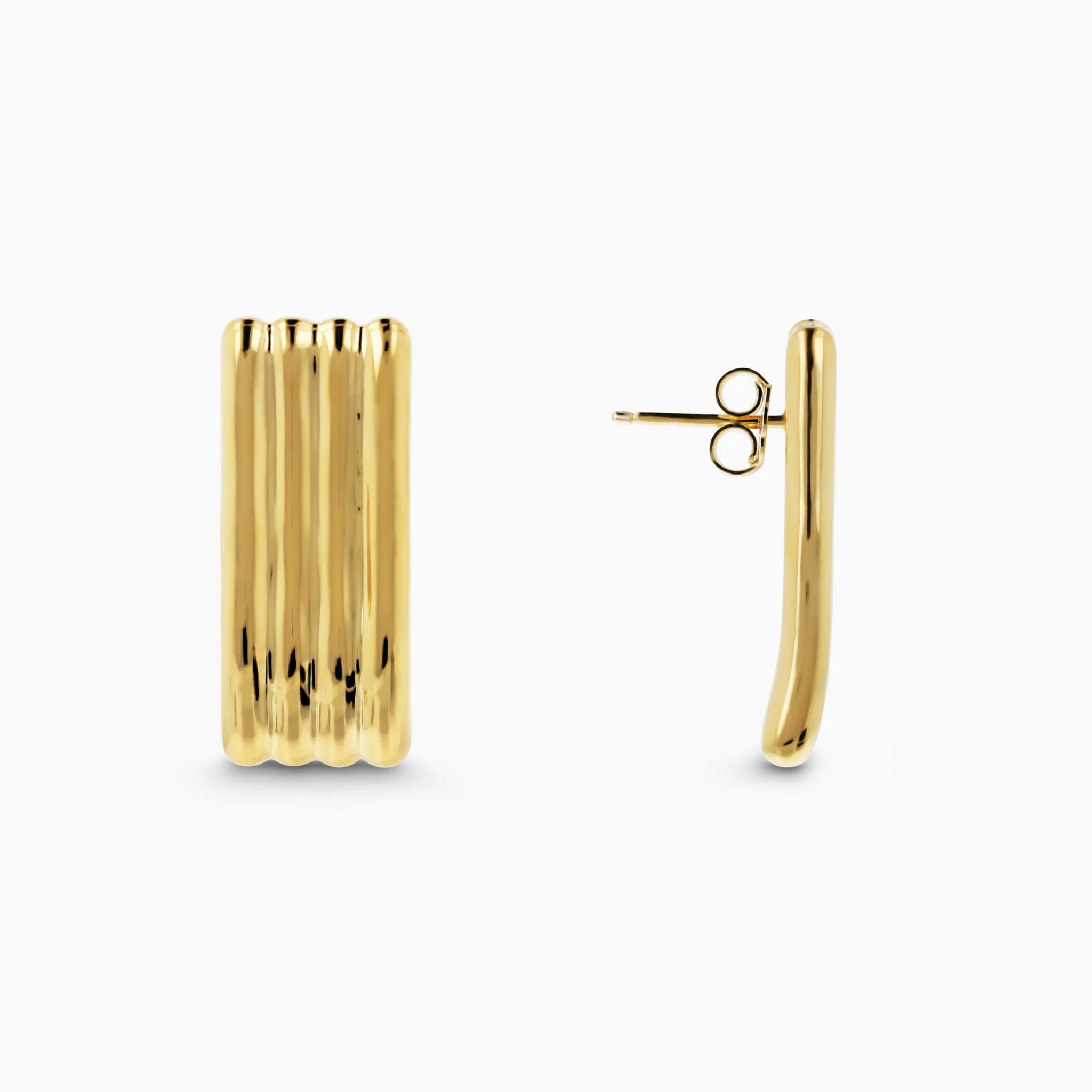 Orecchini a lobo in Argento 925 placcato Oro giallo 18kt. Finitura rigata. Chiusura a perno e farfallina.