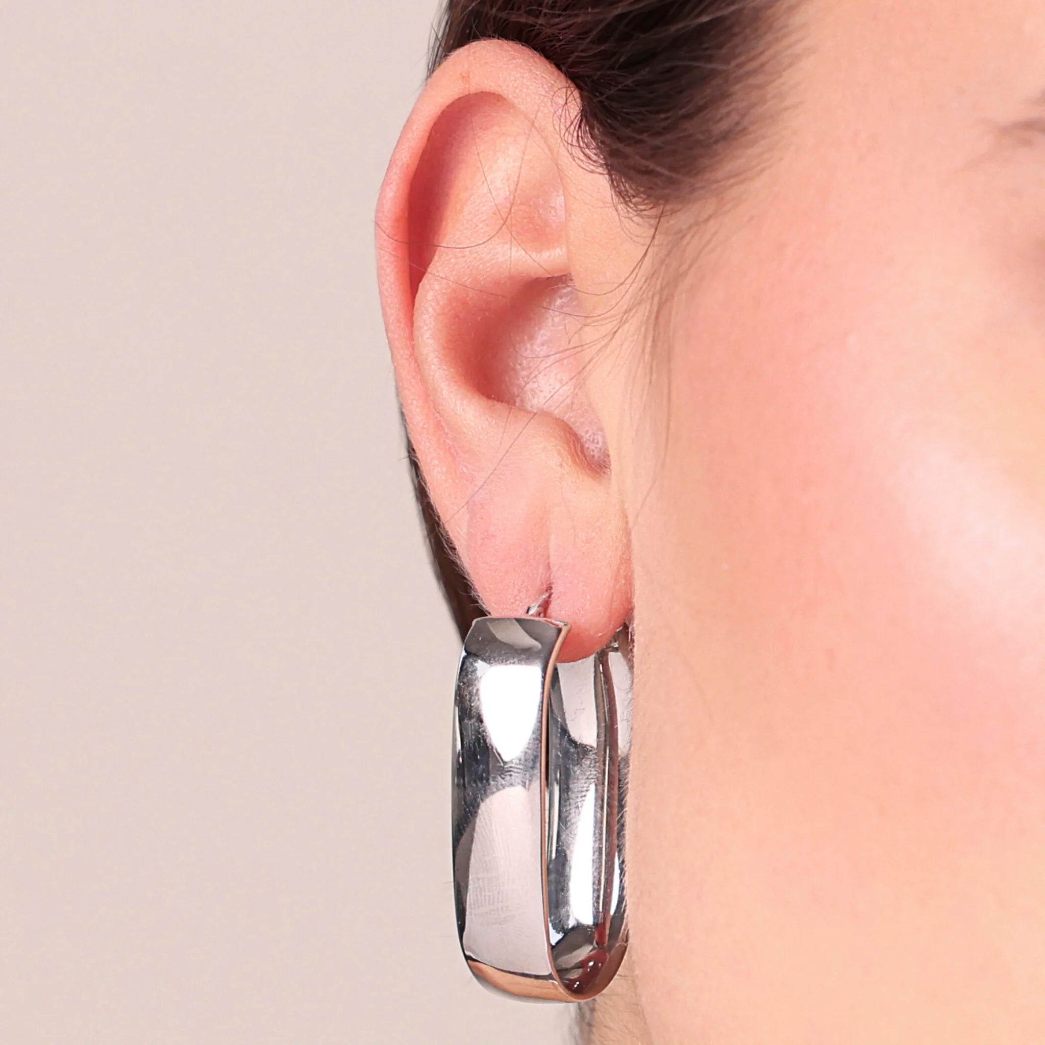Boucles d'oreilles ovales allongées en Argent 925 Platiné avec une surface brillante de 10 mm de large. Fermeture à baïonnette. Dimensions 23x35mm.