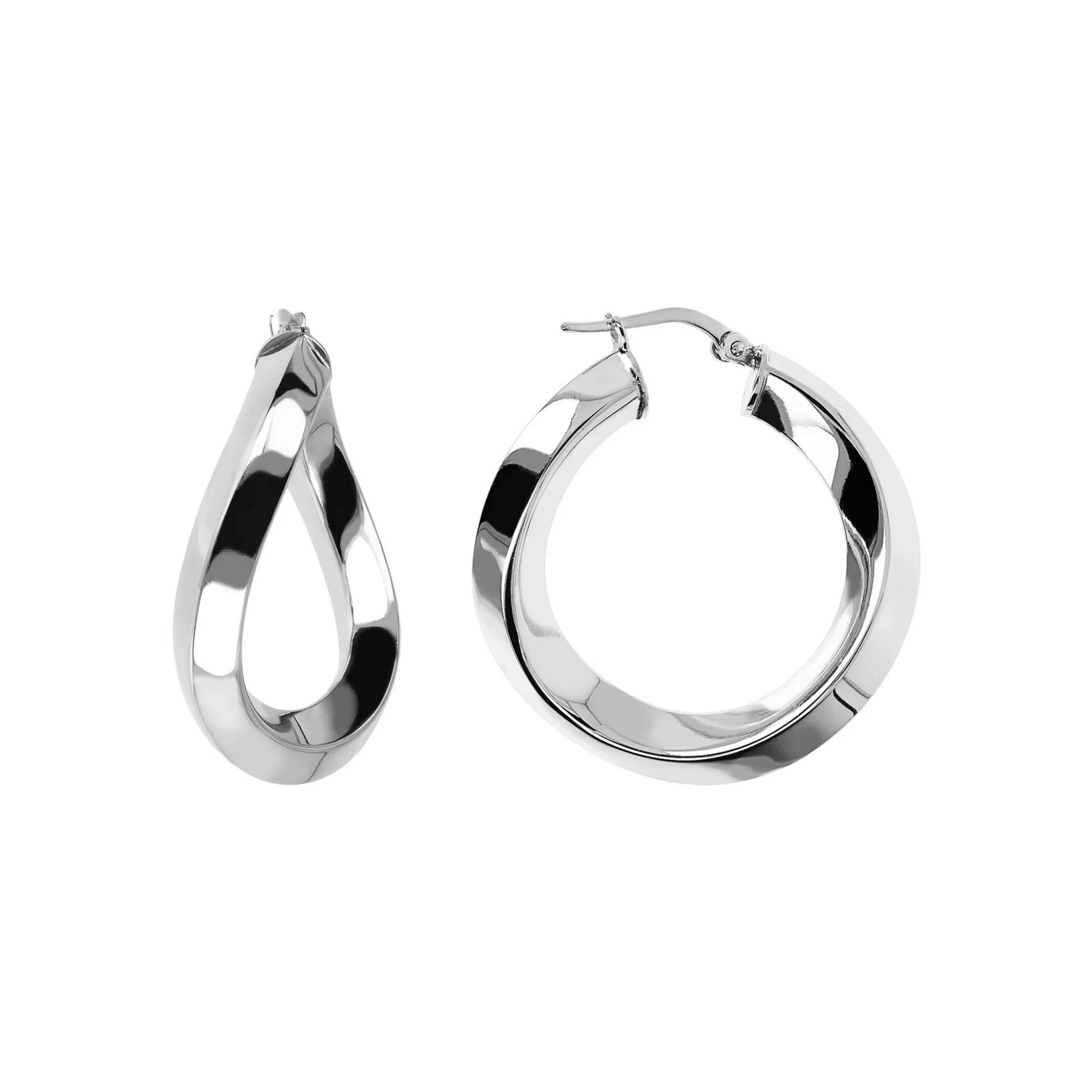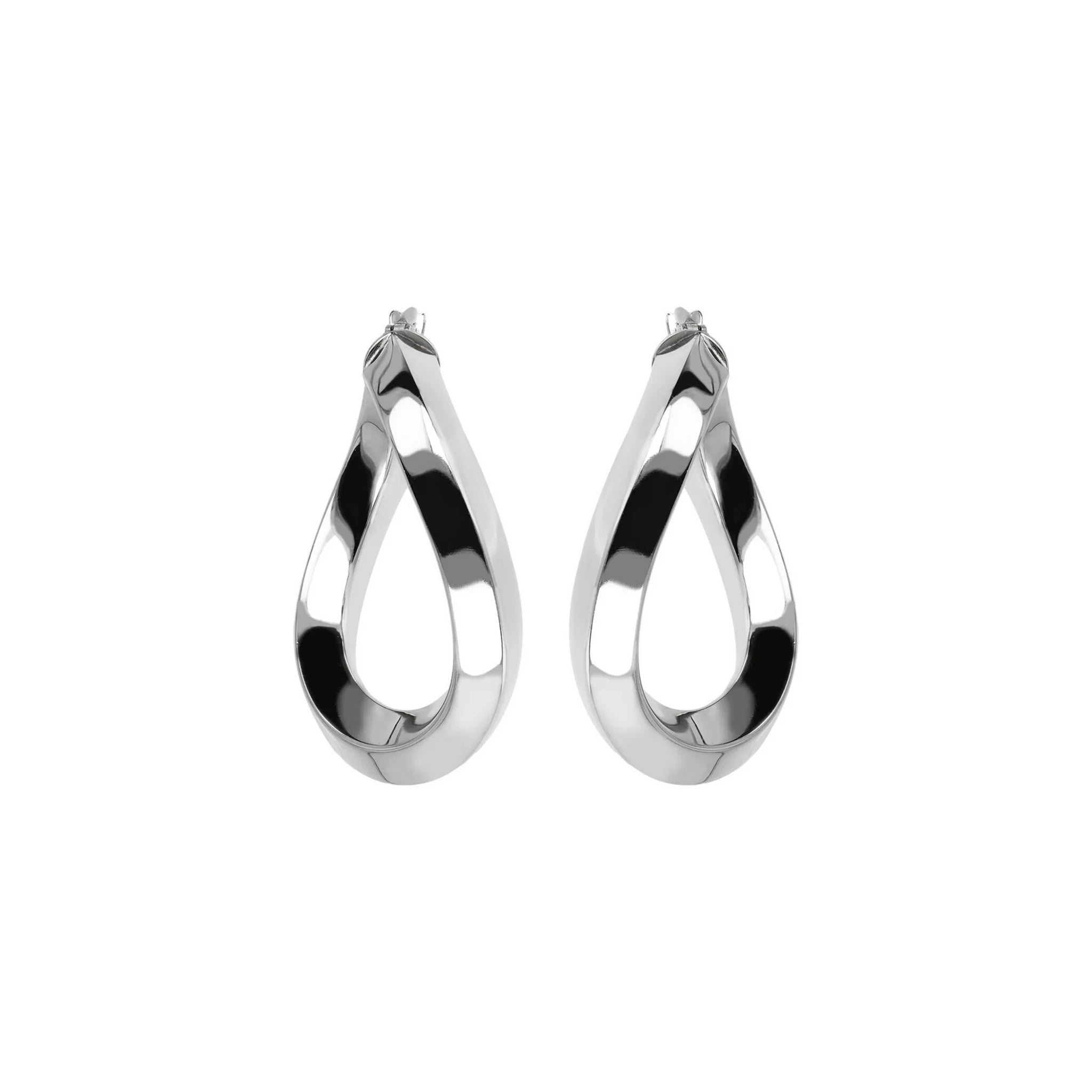 Boucles d'oreilles Bianca par Milor, anneau en argent 925 avec placage platine au design sinueux ; fermeture à baïonnette.