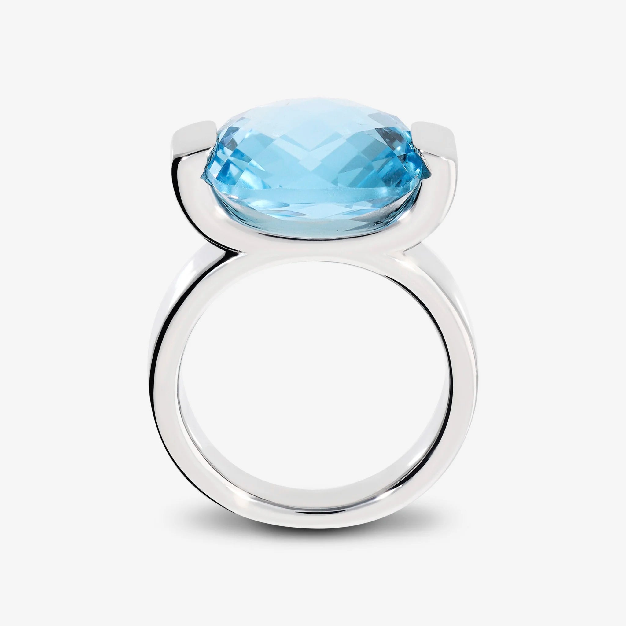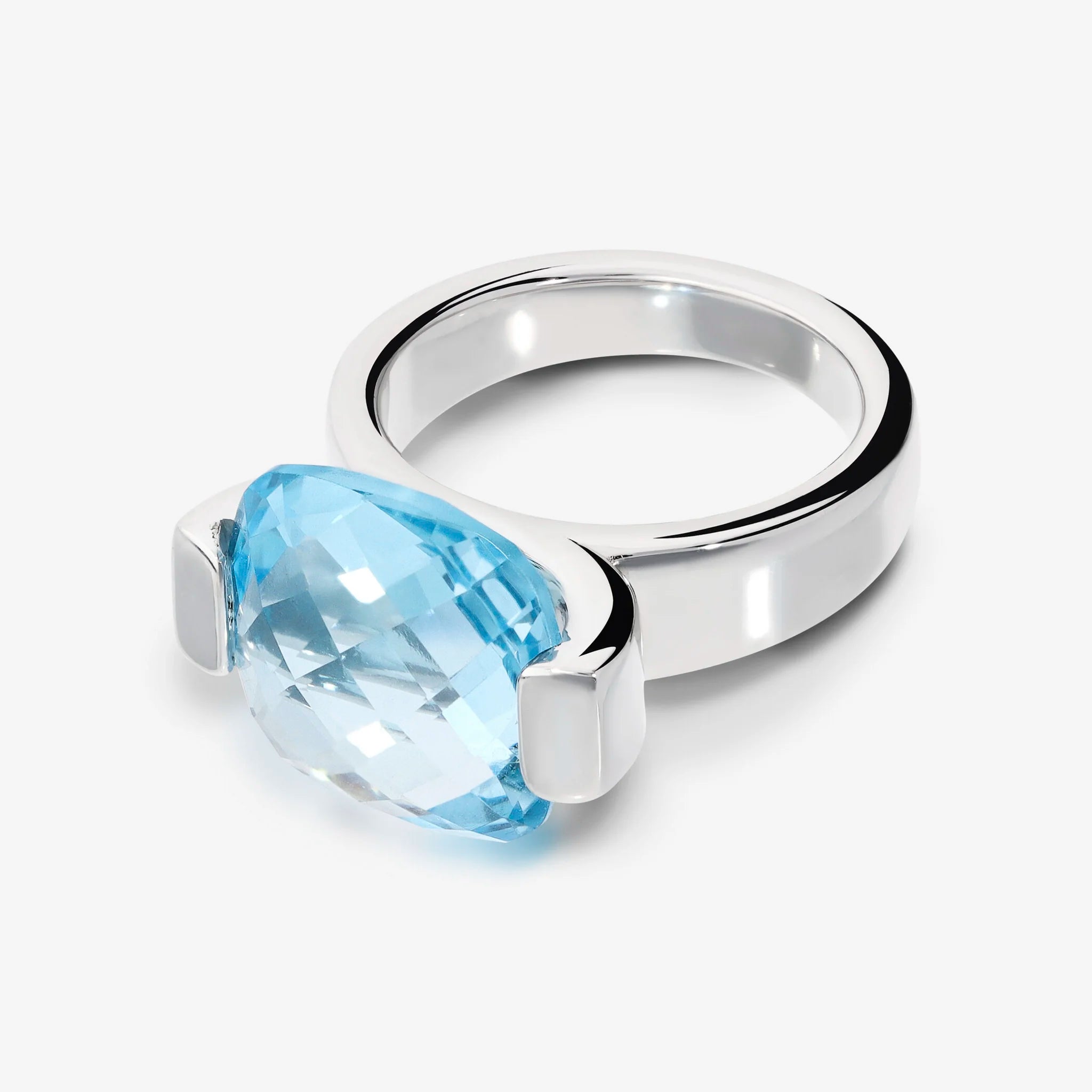 Bague Cocktail en Argent 925 Platiné avec Topaze Bleue Facettée