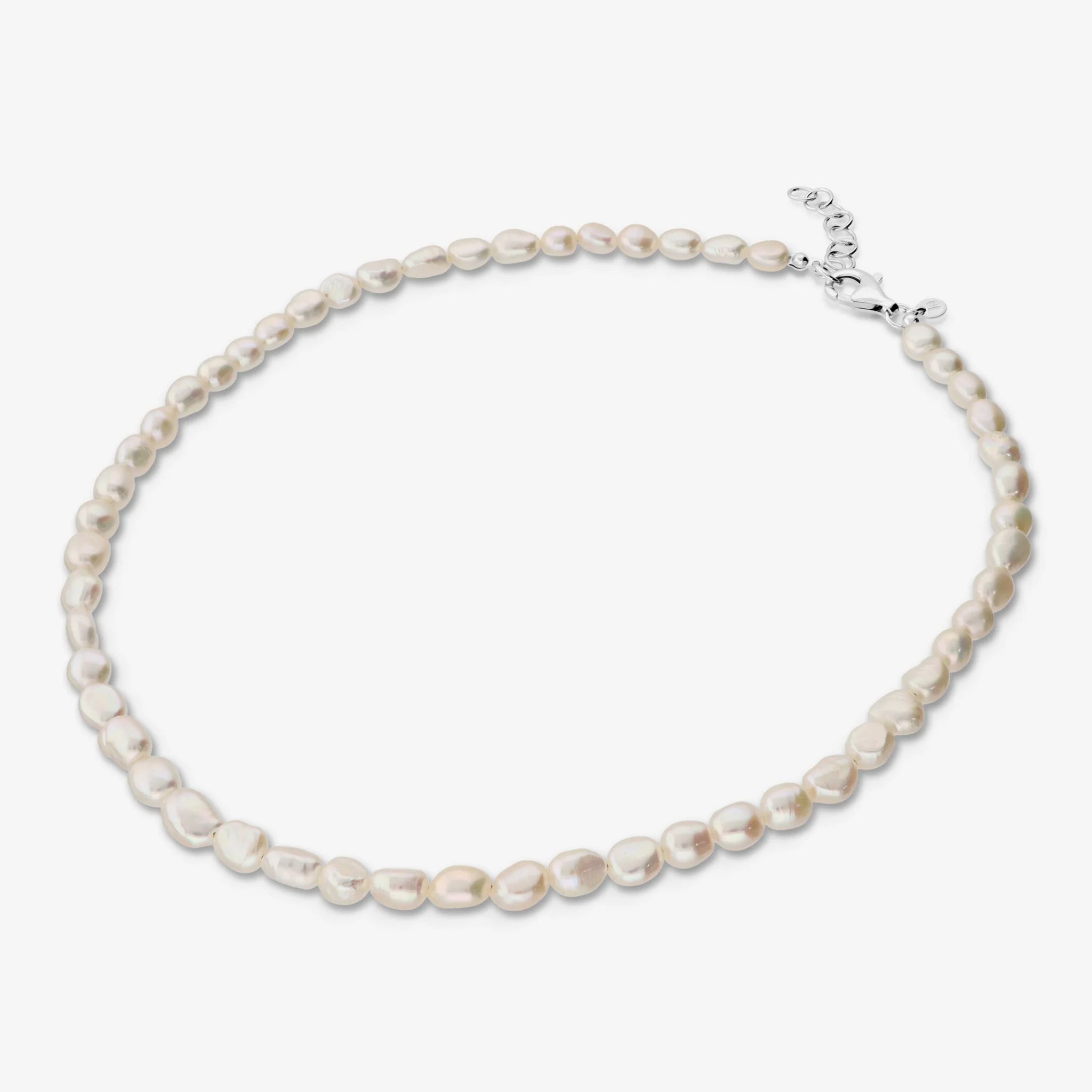 Collier ras de cou Perlaviva by Milor avec perles pépites de culture d'eau douce blanches d'un diamètre d'environ 6/7 mm. Fermoir mousqueton en argent 925 doré à l'or fin 18ct.