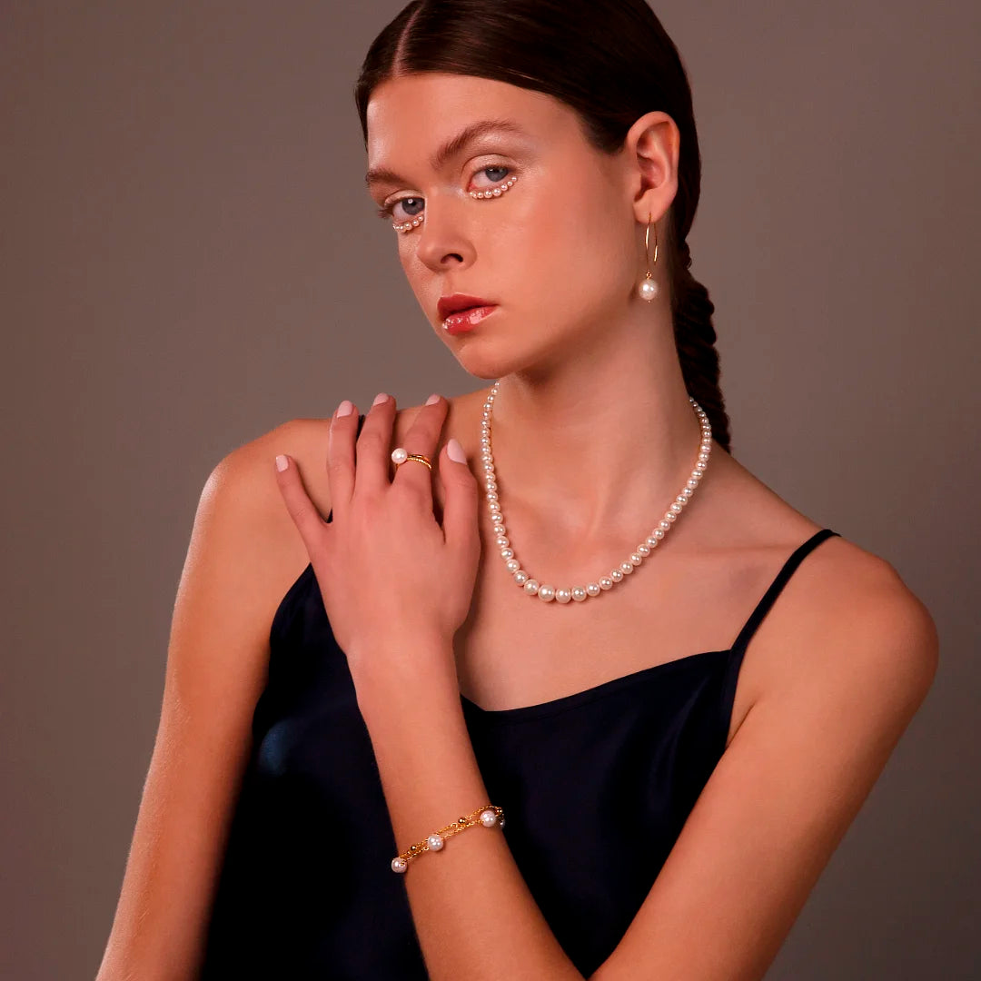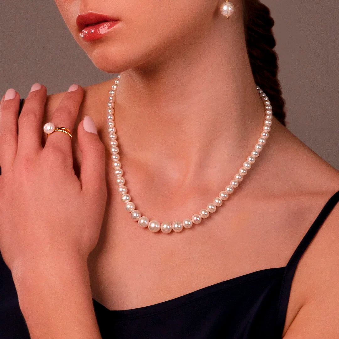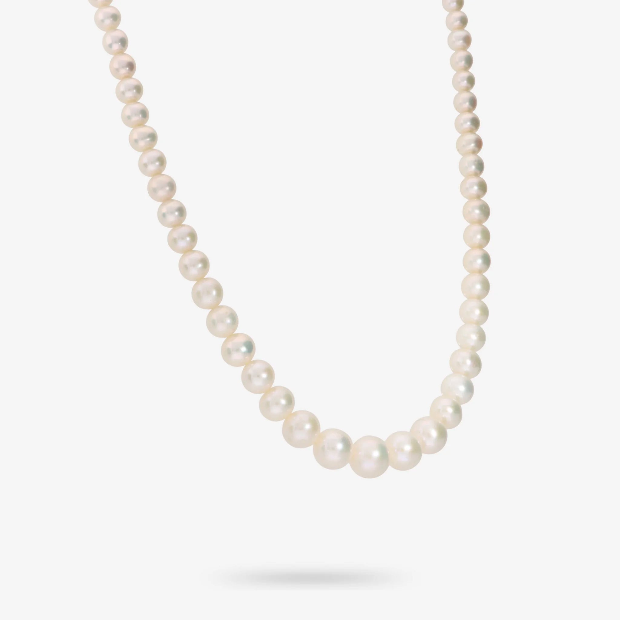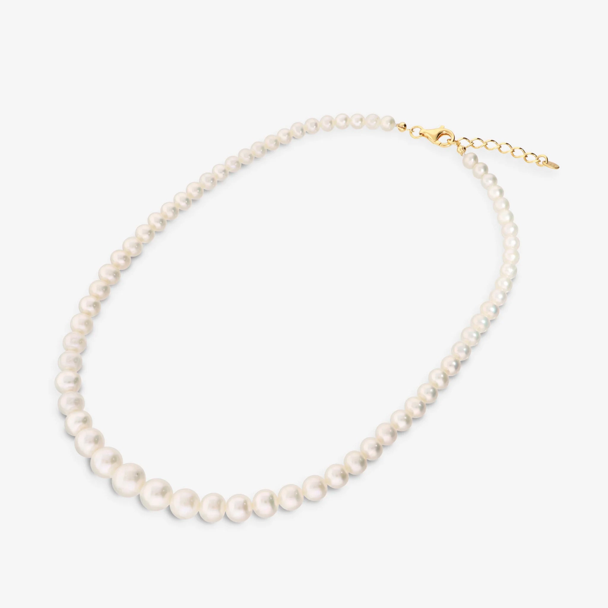 Collier ras de cou Perlaviva by Milor avec perles de culture d'eau douce blanches, diamètre de 5 à 9,5 mm, disposées de manière graduée. Fermoir mousqueton rond en argent 925 doré à l'or fin 18ct.