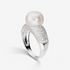 Anello Cocktail in Argento 925 placcato Oro Bianco 18Kt con Cubic Zirconia e Perla Bianca d'Acqua Dolce Ø 11 mm