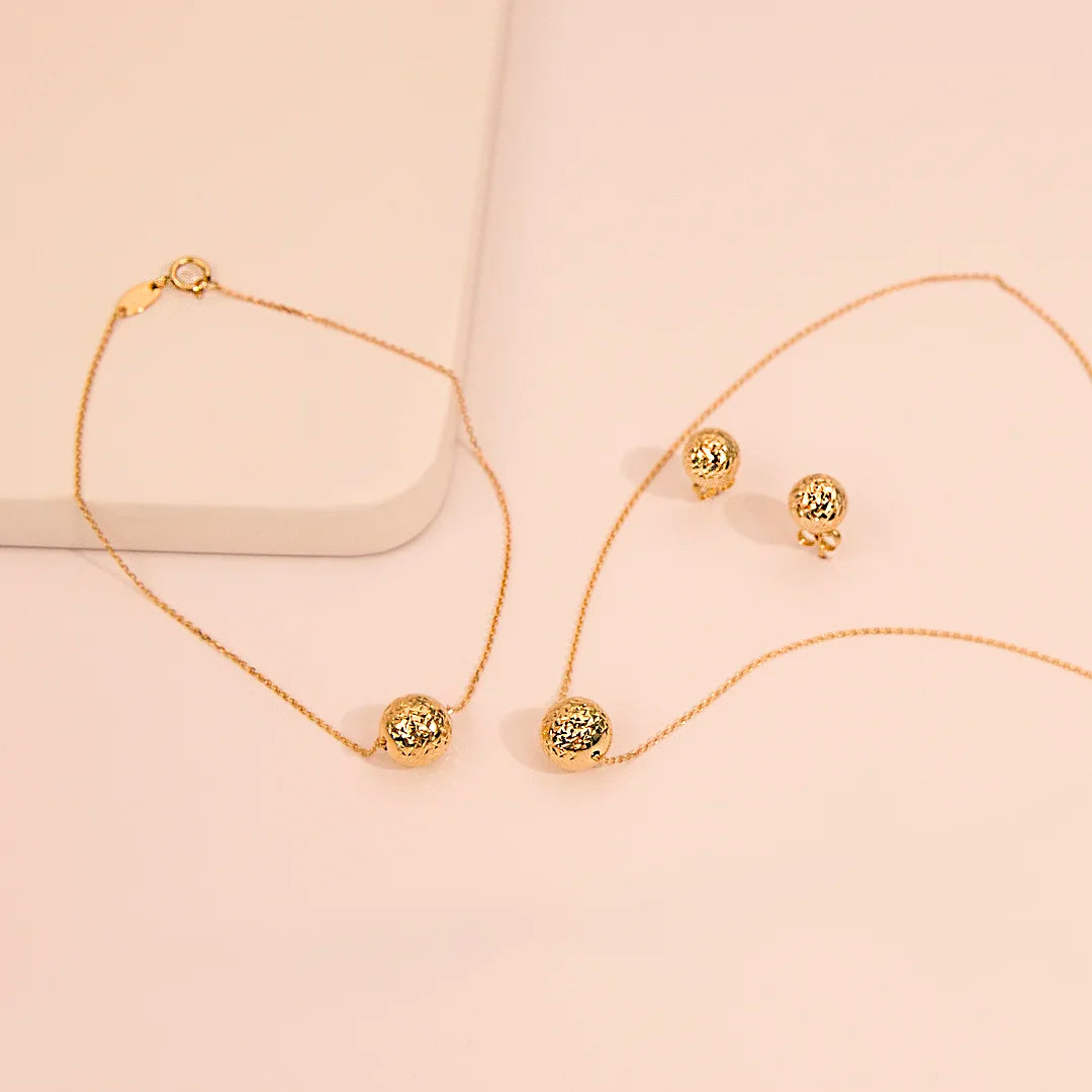 Bracciale Catena Rolo con Pendente Sfera Martellata Oro 375