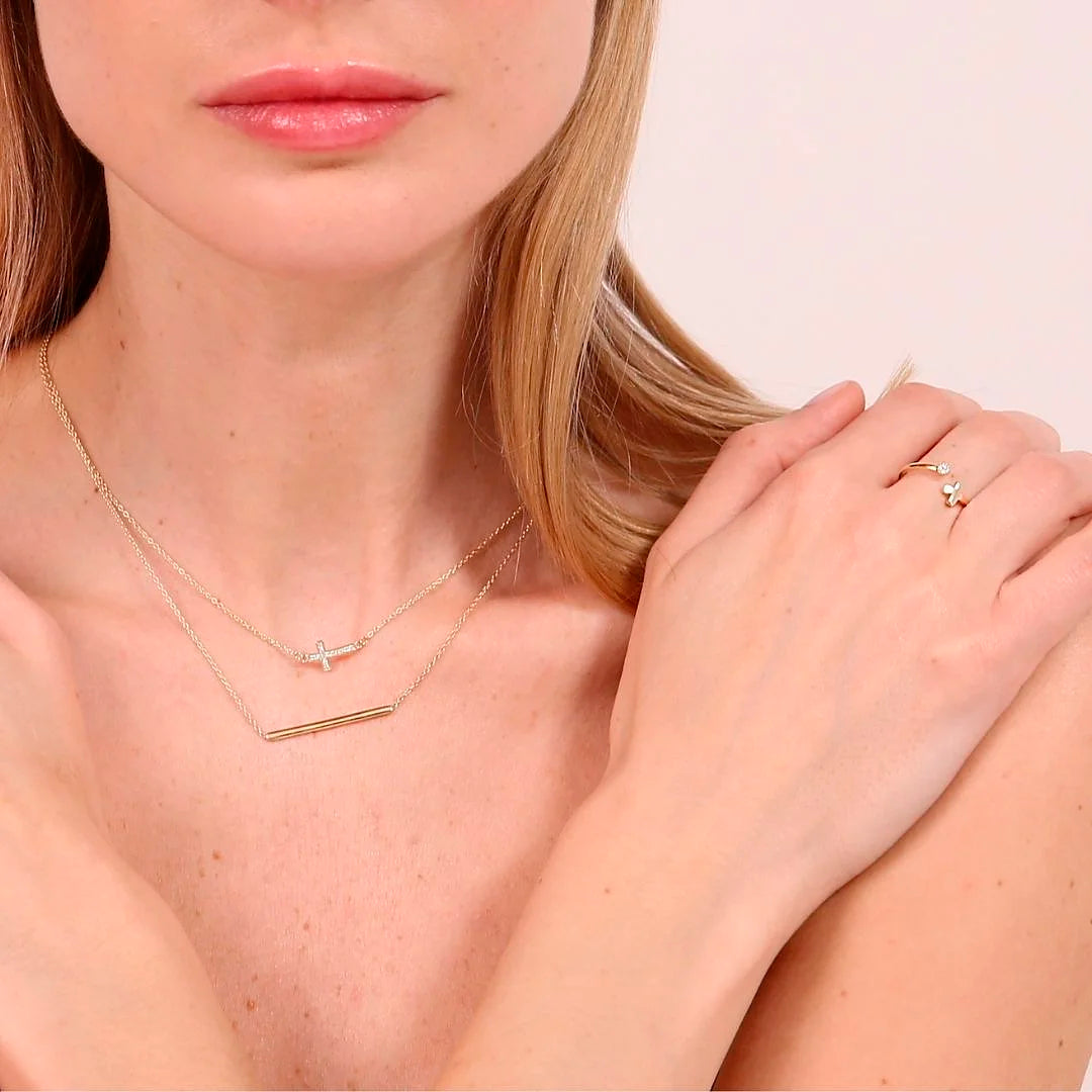 Collana girocollo in Oro 375/1000 con catena forzatina impreziosita da una barretta lucida; chiusura a moschettone.