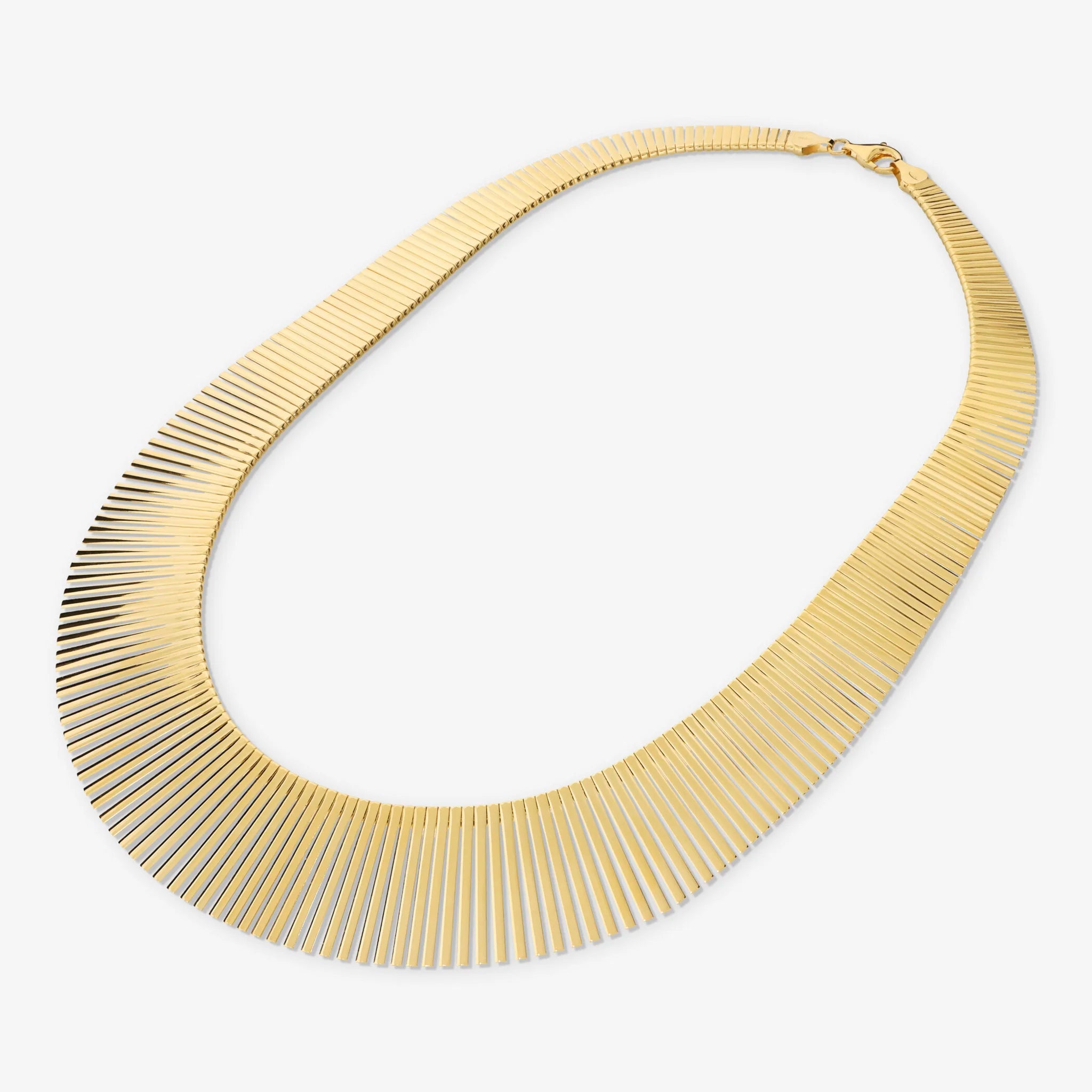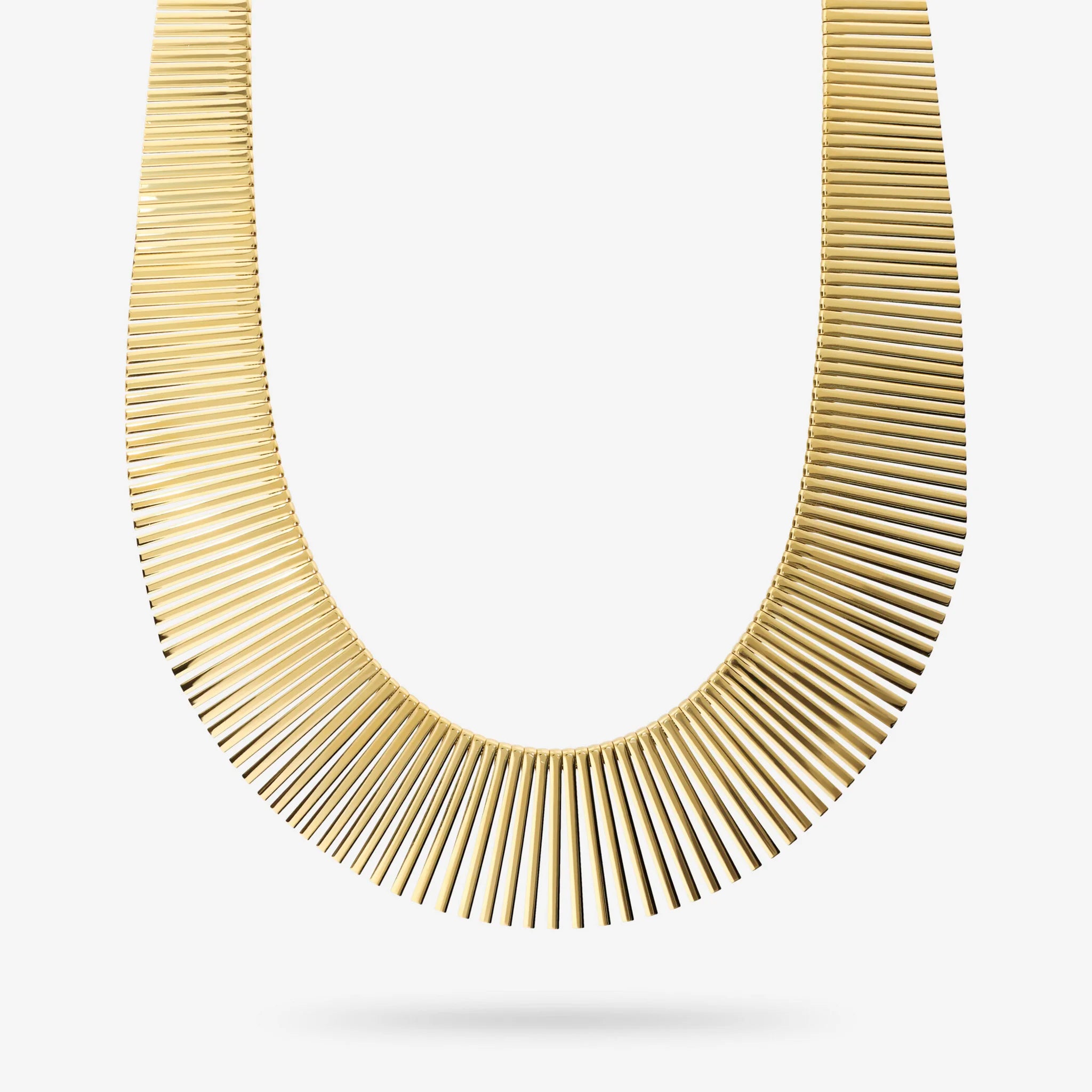 Collana girocollo Cleopatra in Argento 925, placcato Oro giallo 18kt, dal design graduato. Finitura lucida. Lunghezza 45 cm. Chiusura a moschettone.
