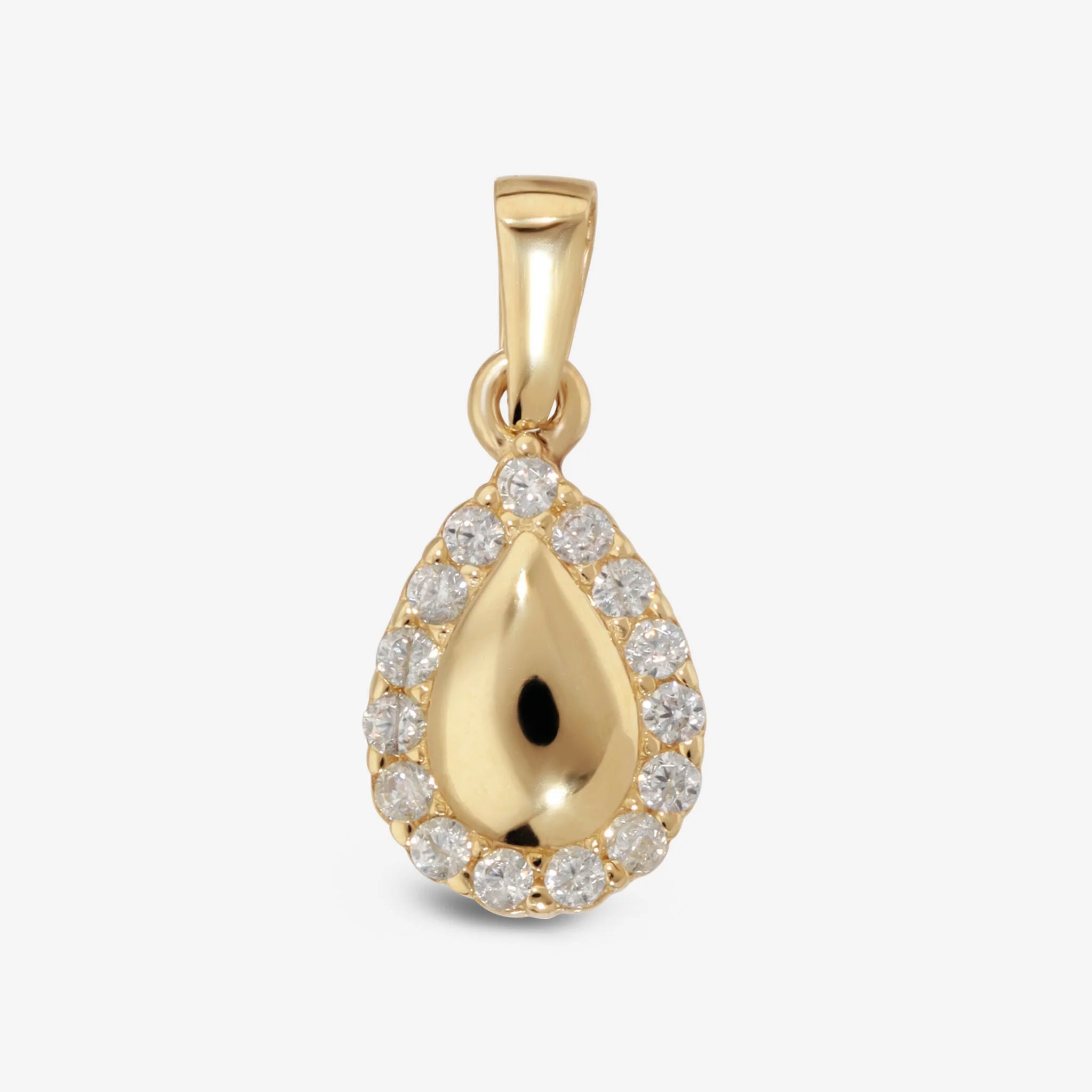 Ciondolo in Oro giallo 375/1000 a forma di goccia con cubic zirconia. Finitura lucida.