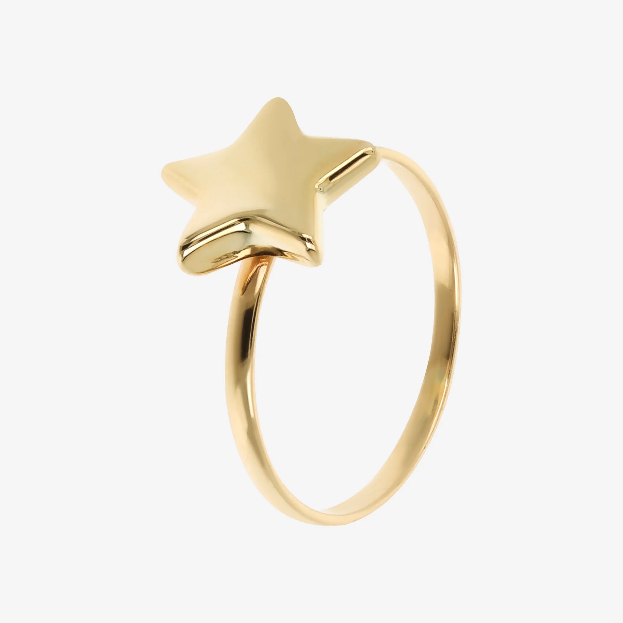 Anello cocktail in Oro 375/1000 con elemento a forma di stella. Finitura lucida.