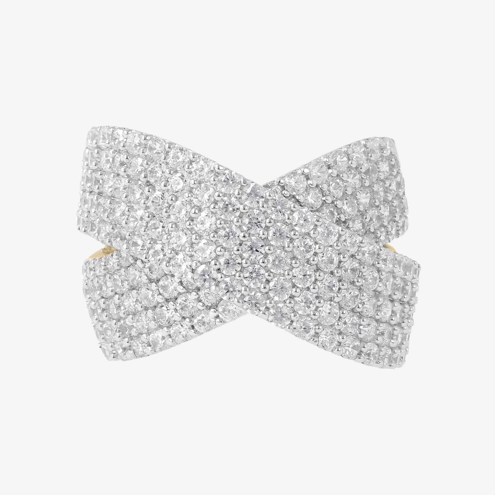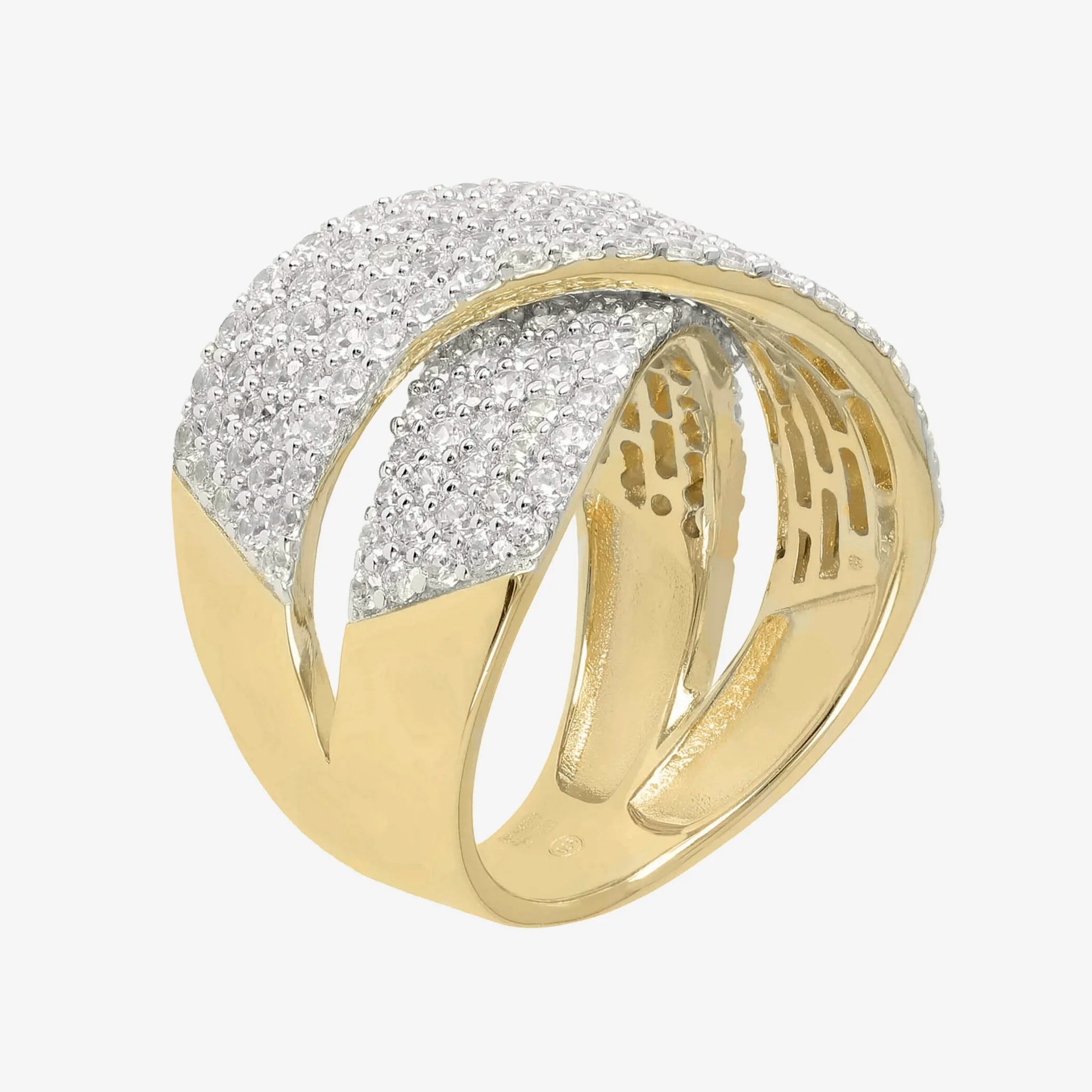 Anello in Argento 925 placcato Oro Giallo 18Kt con Incrocio in Pavé di Cubic Zirconia
