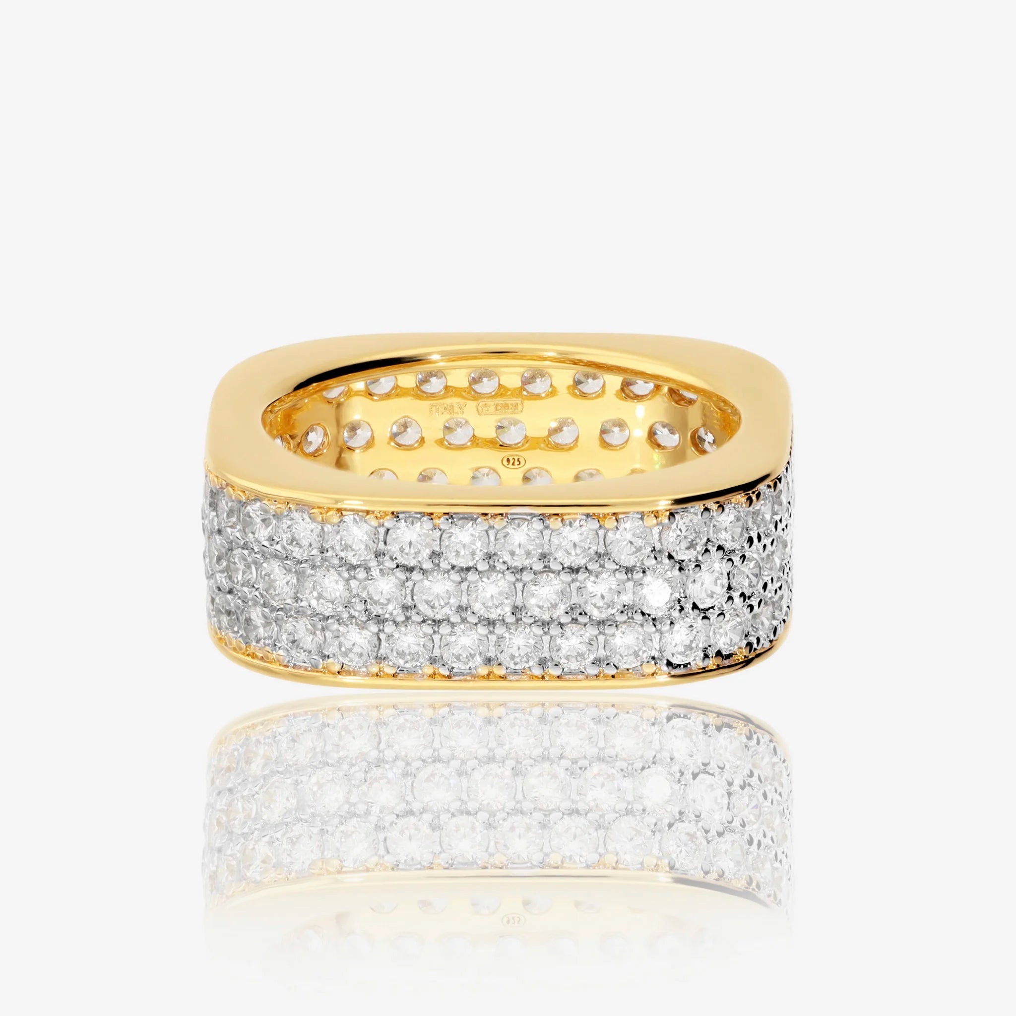 Anello Quadrato in Argento 925 placcato Oro Giallo 18Kt con Pavé di Cubic Zirconia