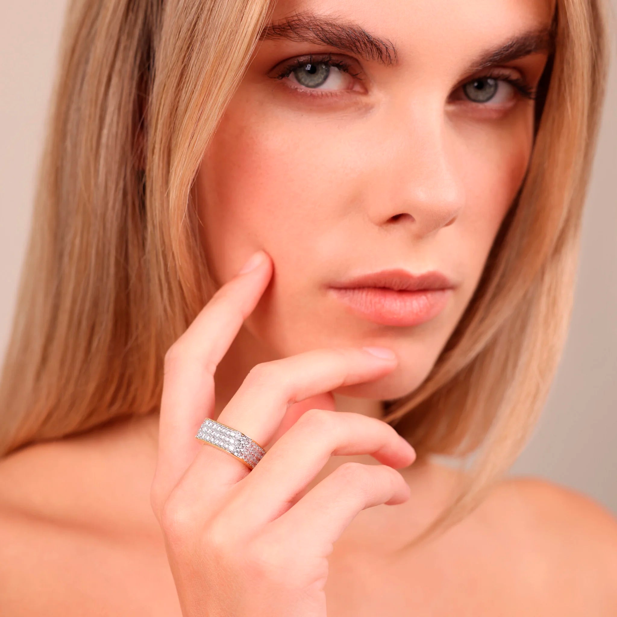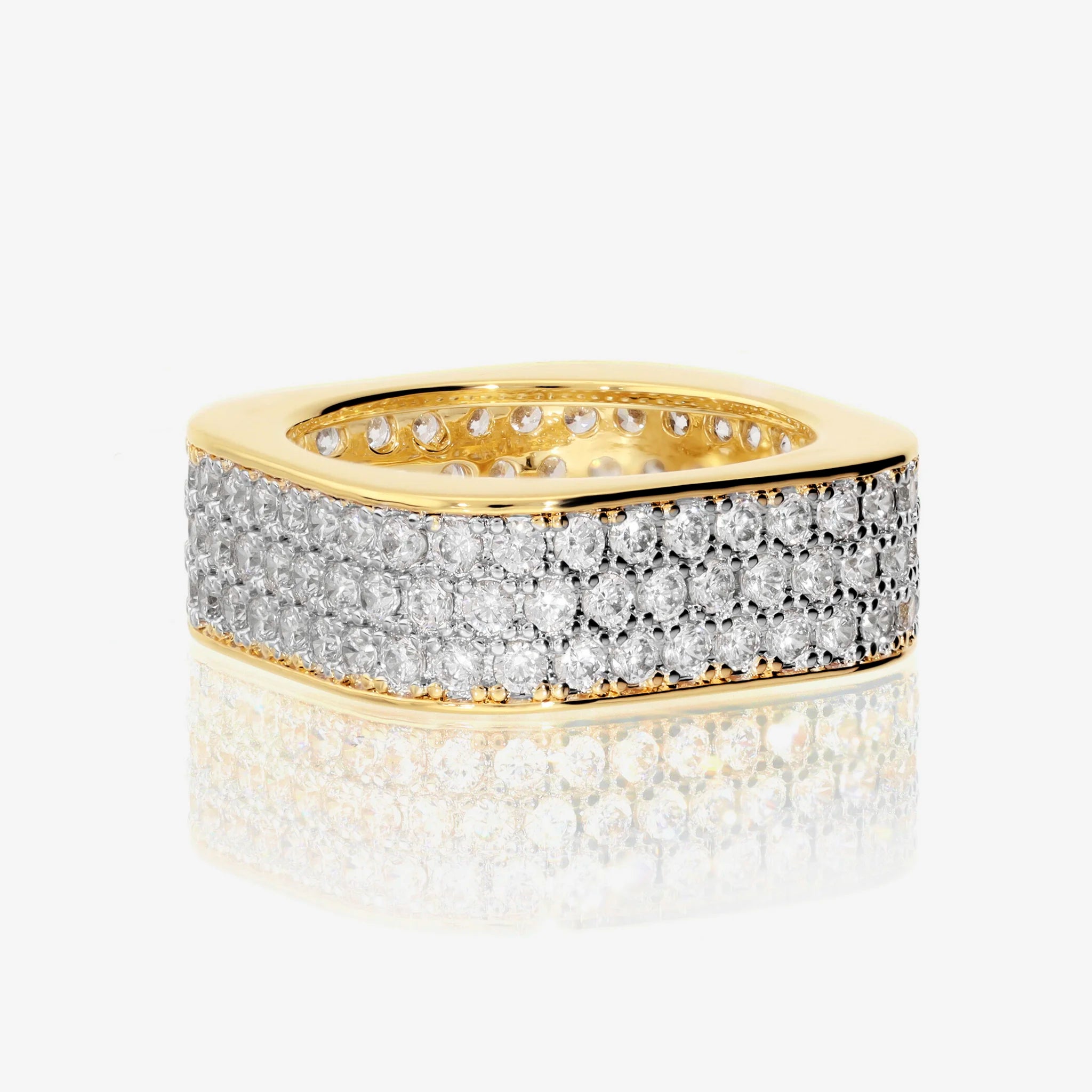 Anello in Argento 925, placcato Oro giallo 18kt, dal design quadrato con pavé di cubic zirconia, qualità 'Luminosa', pari a 5.25ct.
