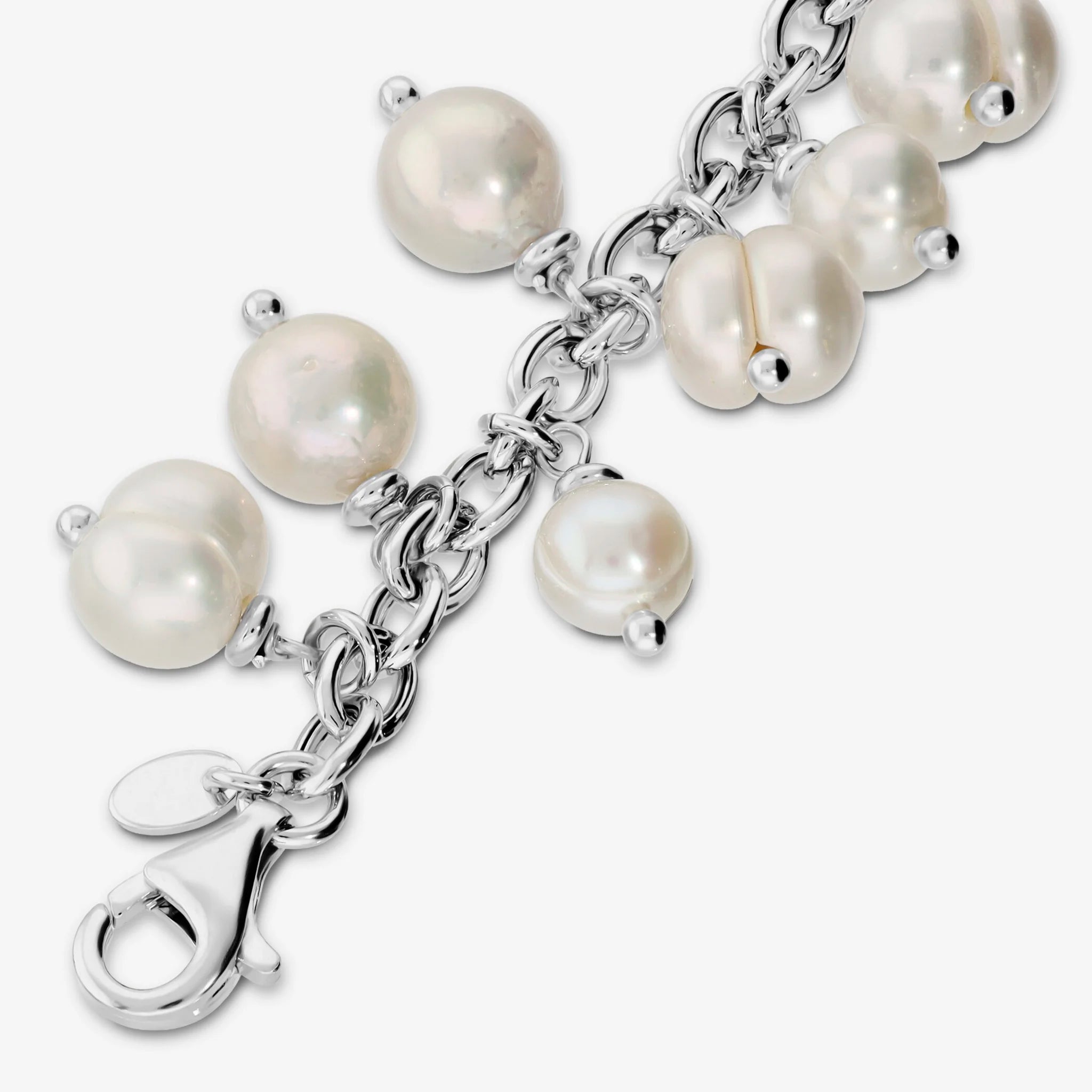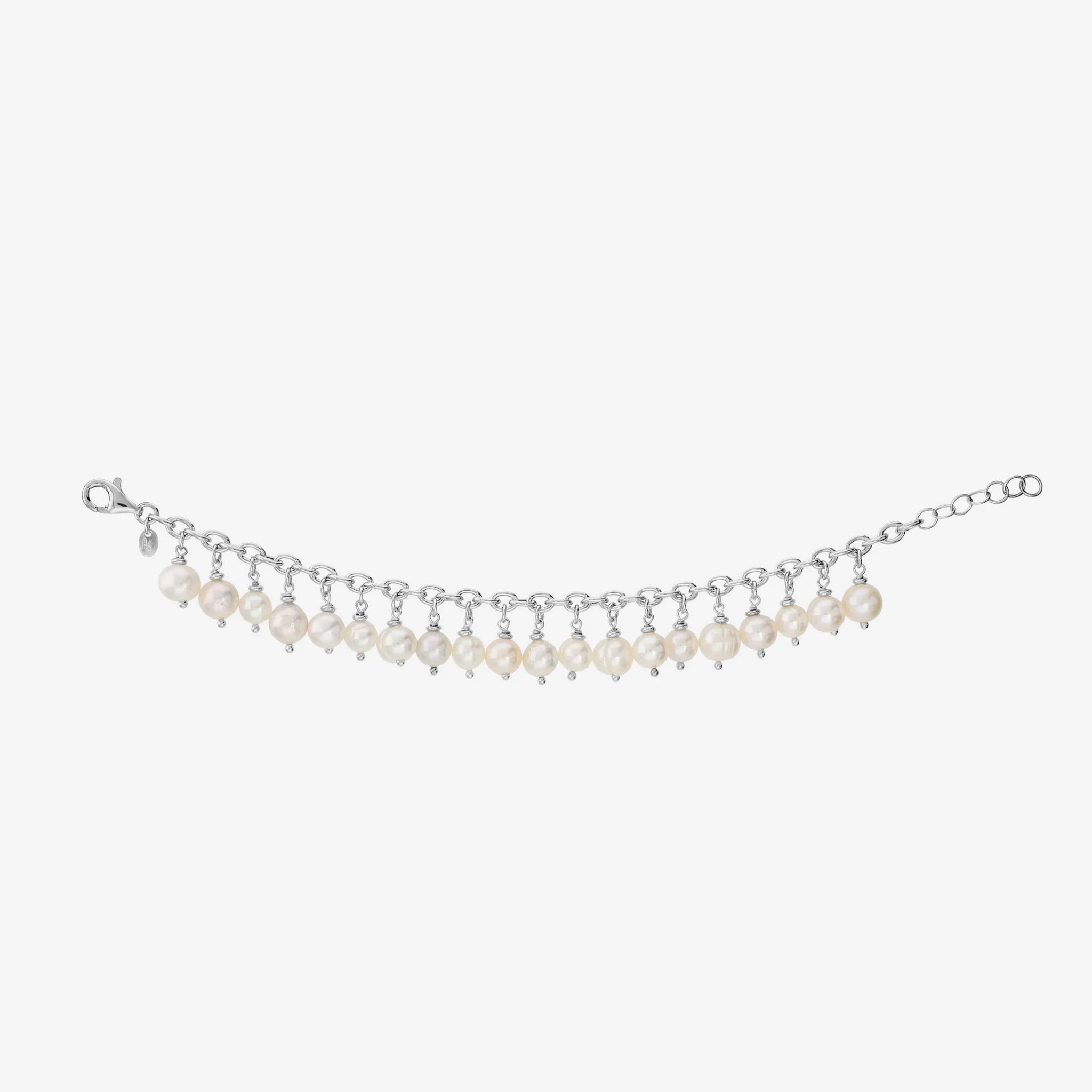 Bracciale Charms in Argento 925 placcato Oro Bianco 18Kt con Perle Bianche d'Acqua Dolce Ø 8-9.5 mm