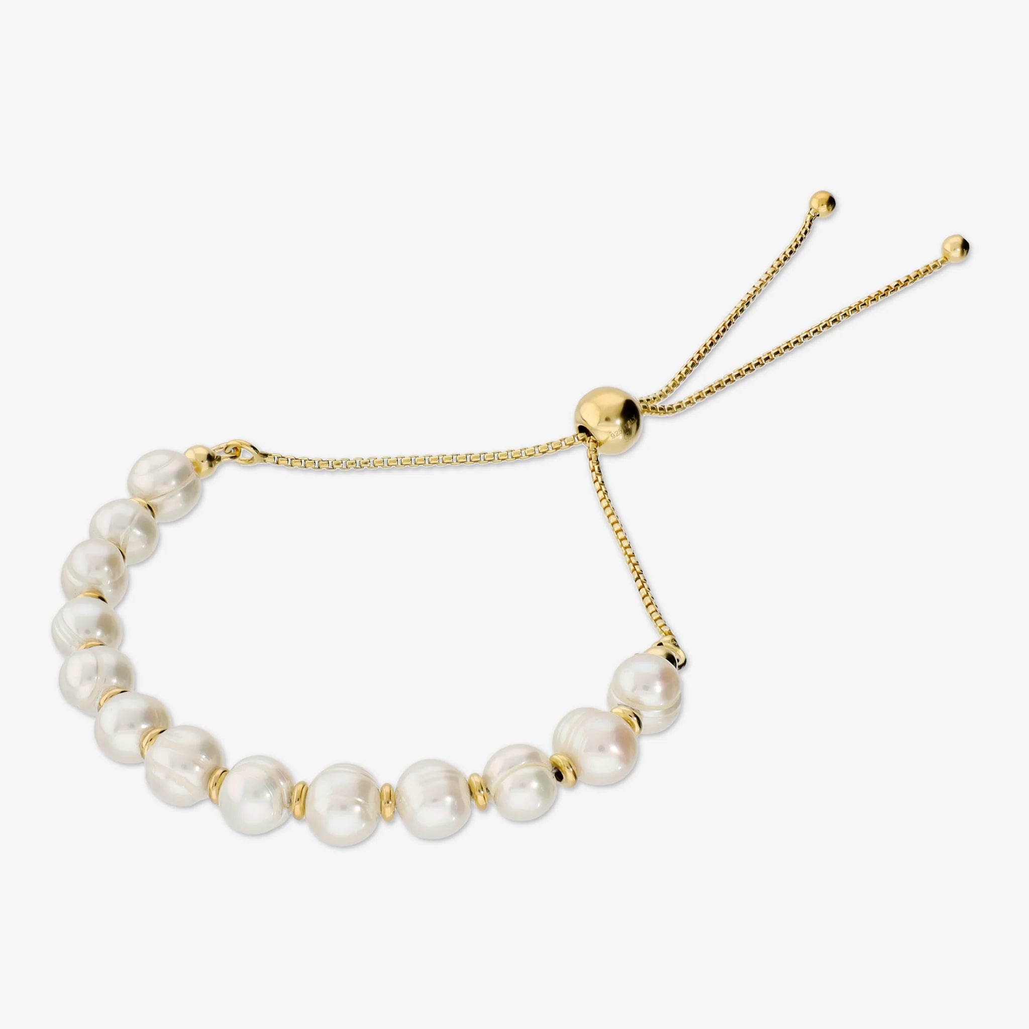 Bracciale in Argento 925 placcato Oro Giallo 18Kt con Perle Bianche d'Acqua Dolce Ø 6/7 mm
