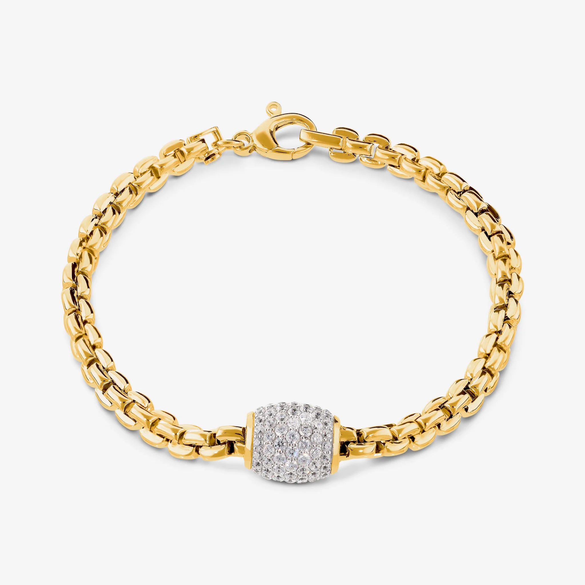 Bracciale Maglia Veneziana in Argento 925 placcato Oro Giallo 18Kt con Pavé di Cubic Zirconia