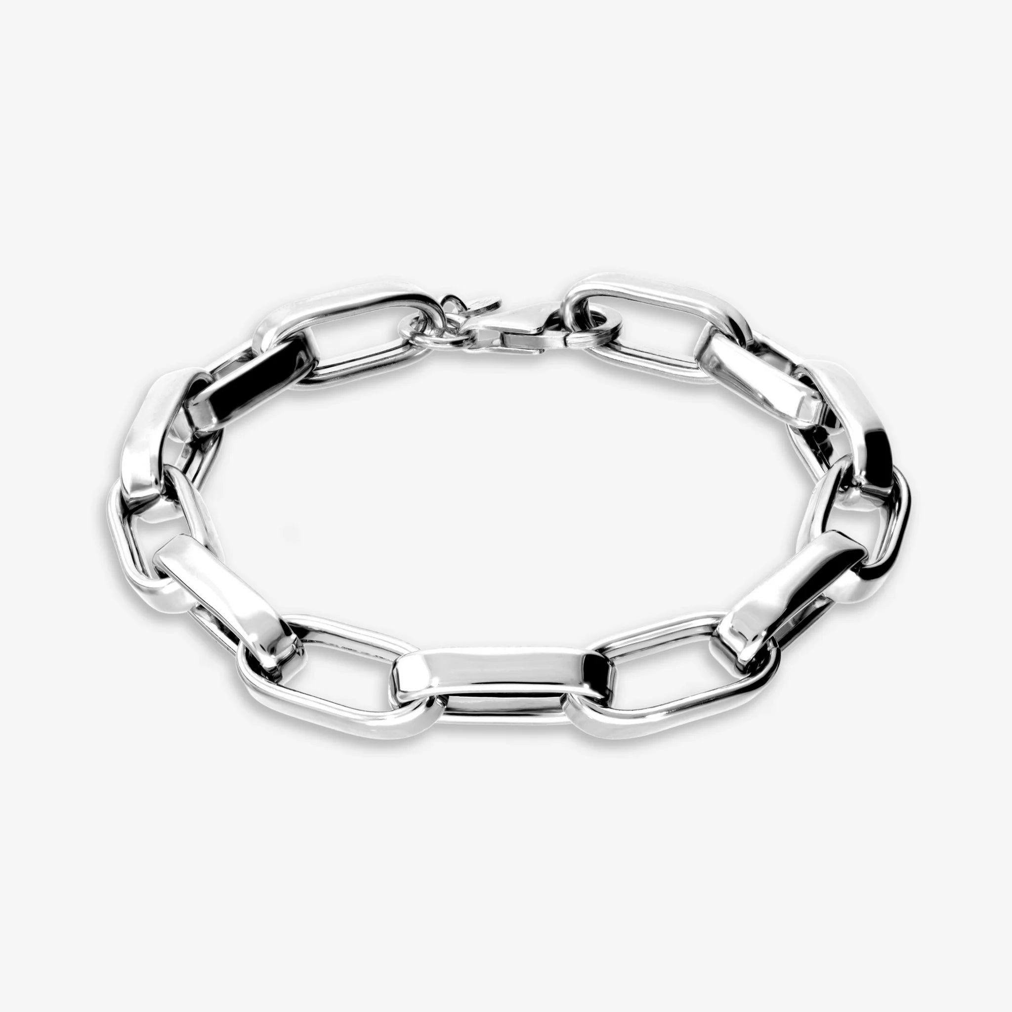 Bracciale Maxi Maglie Ovali Allungate in Argento 925 placcato Platino