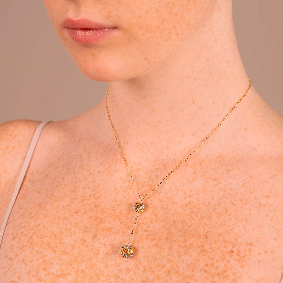 Collana a Cravatta con Catena Forzatina e Nodi Bicolori Oro 375