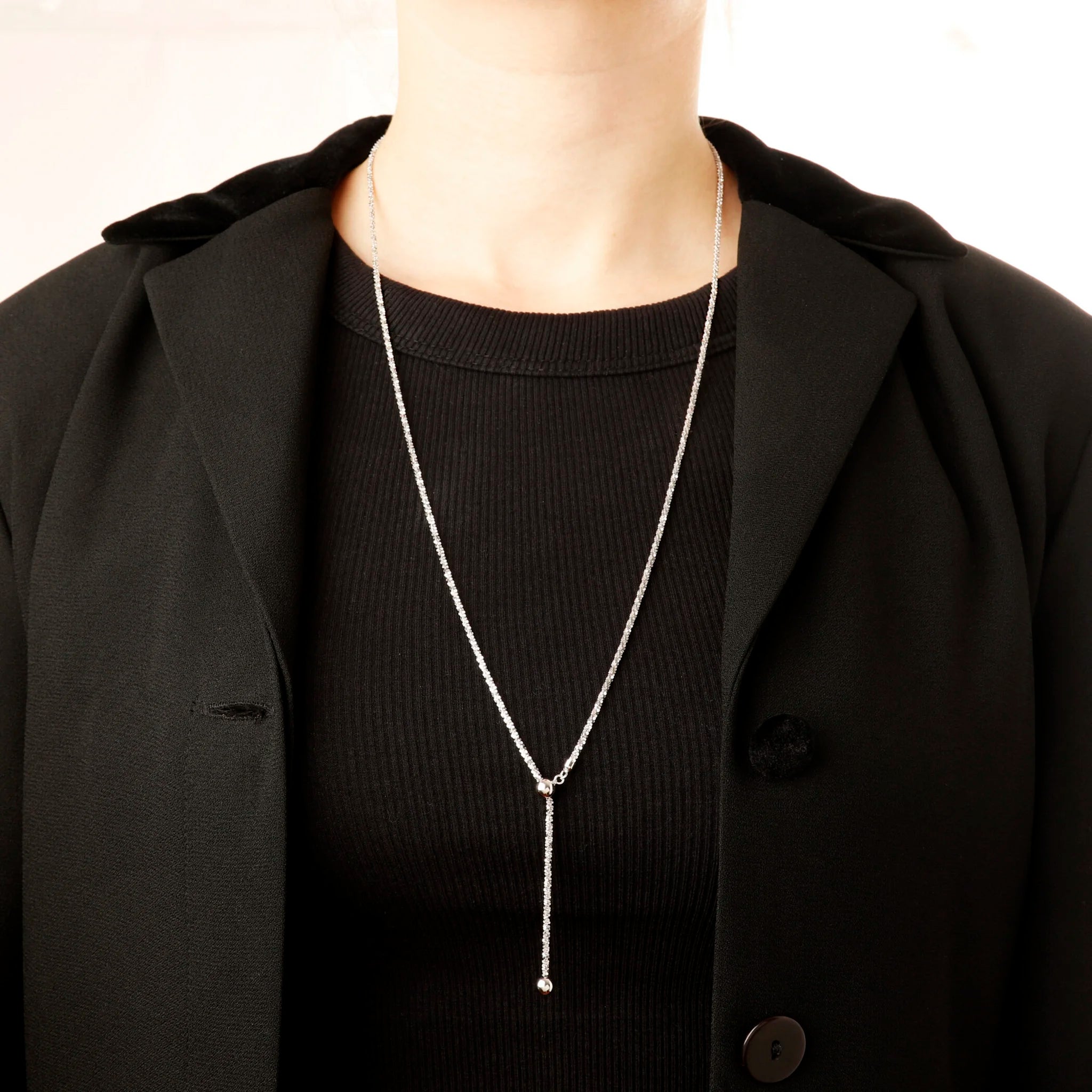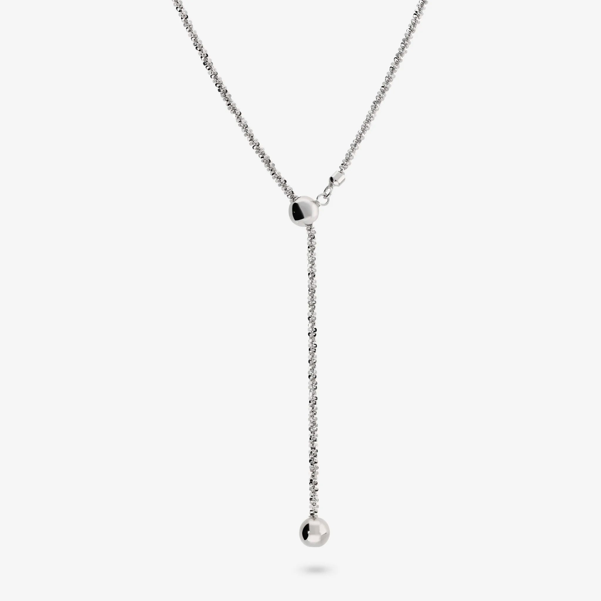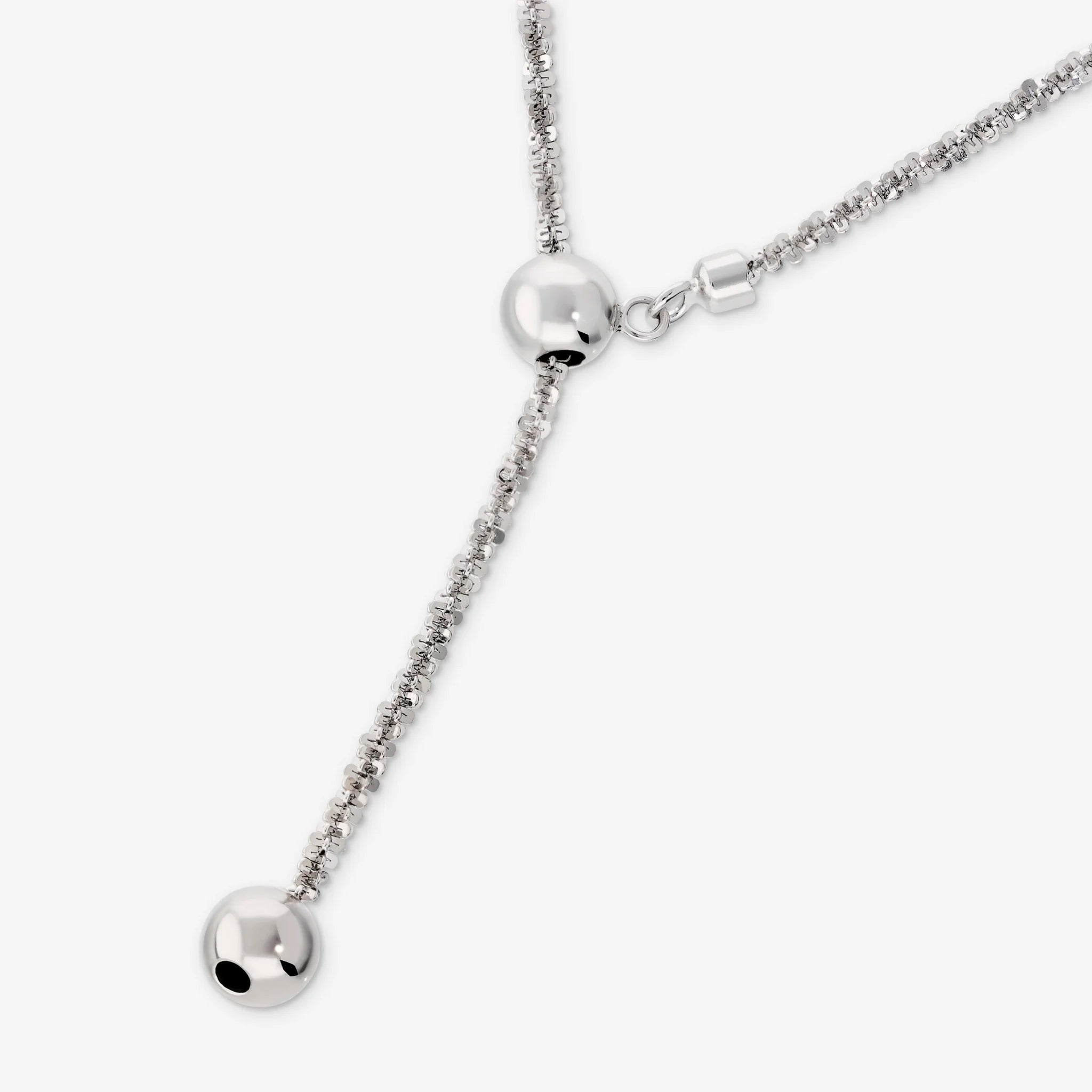 Collana regolabile in Argento 925 placcato Platino. Maglia margherita con bead lucide. Lunghezza massima 70 cm.