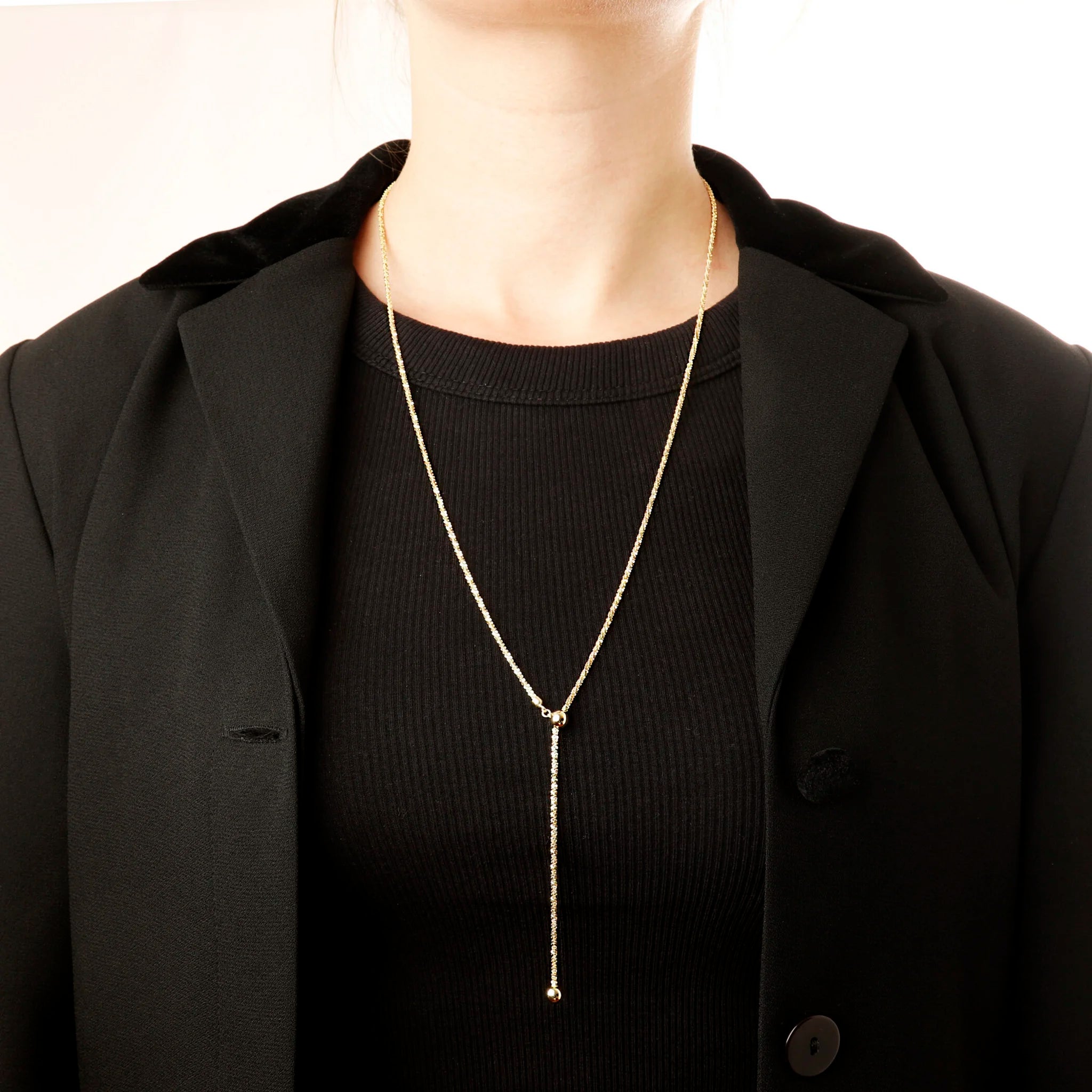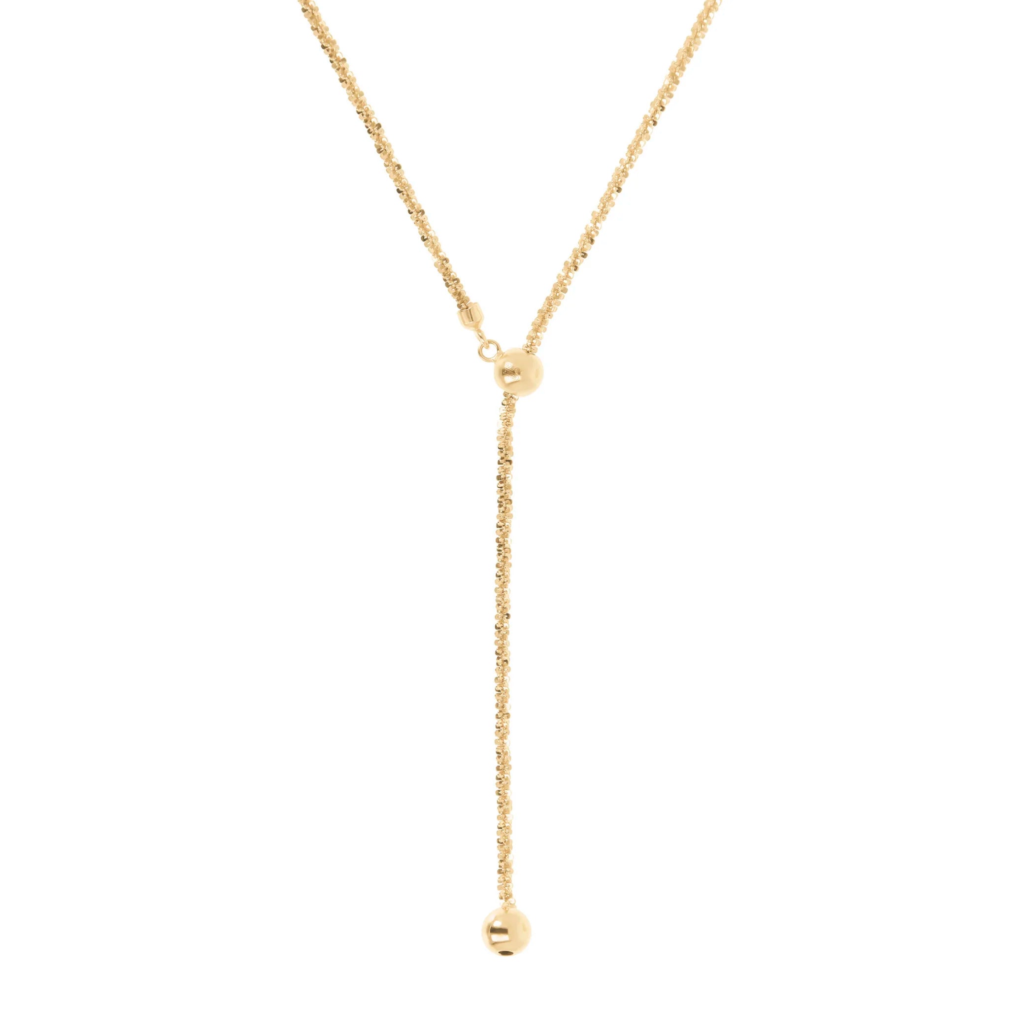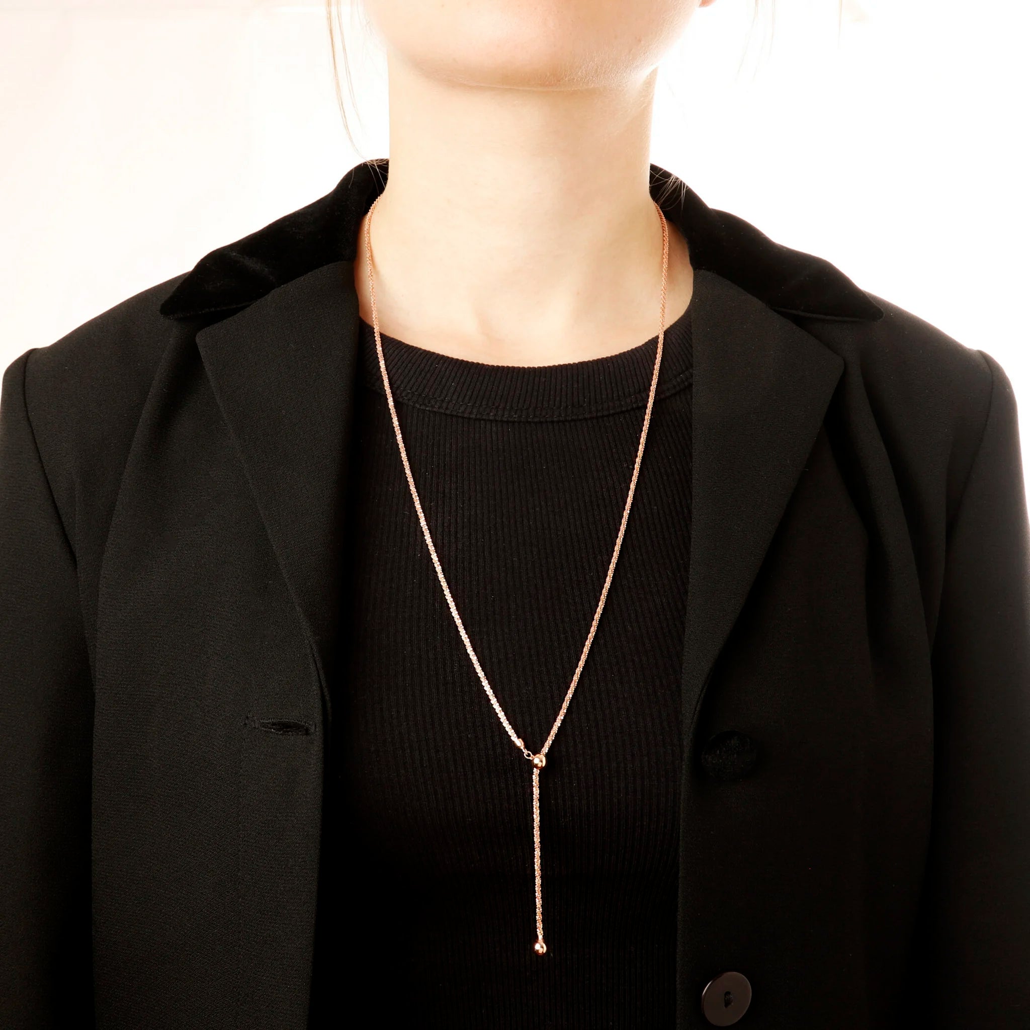 Collana regolabile in Argento 925 placcato Platino. Maglia margherita con bead lucide. Lunghezza massima 70 cm.