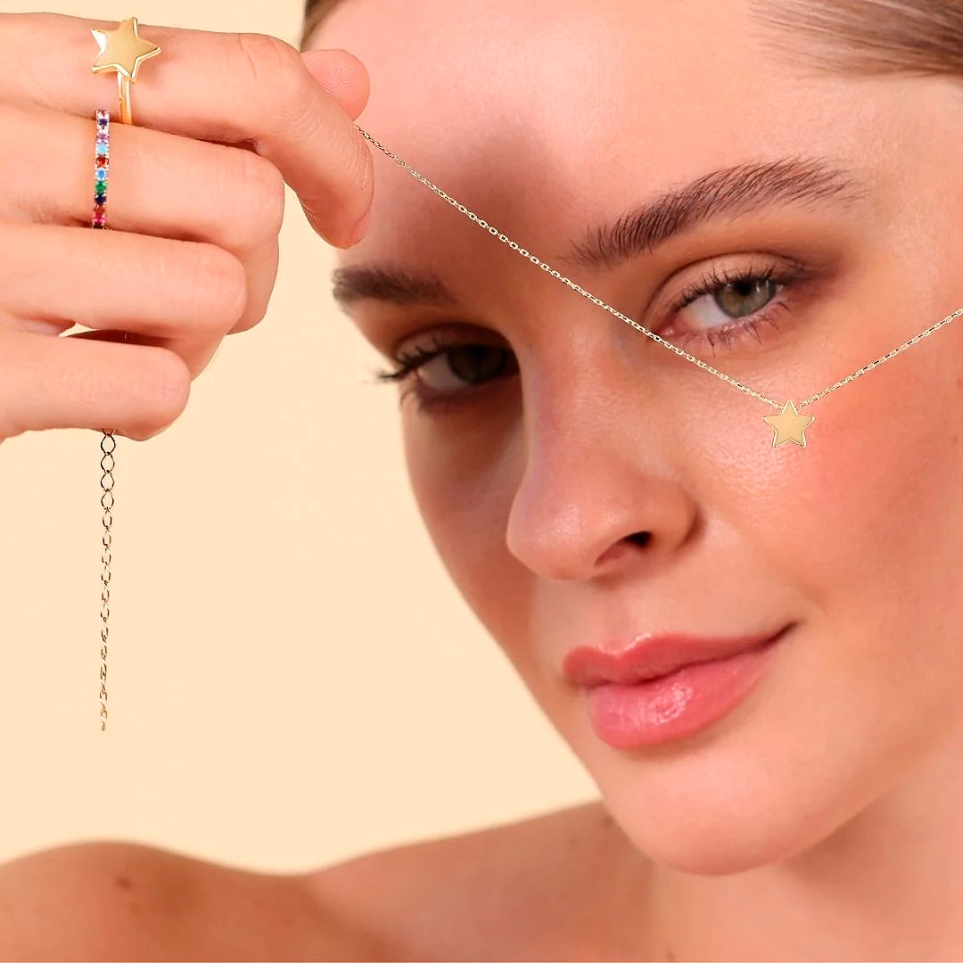 Collana Maglia Brillantina in Oro 375 con Pendente Stella
