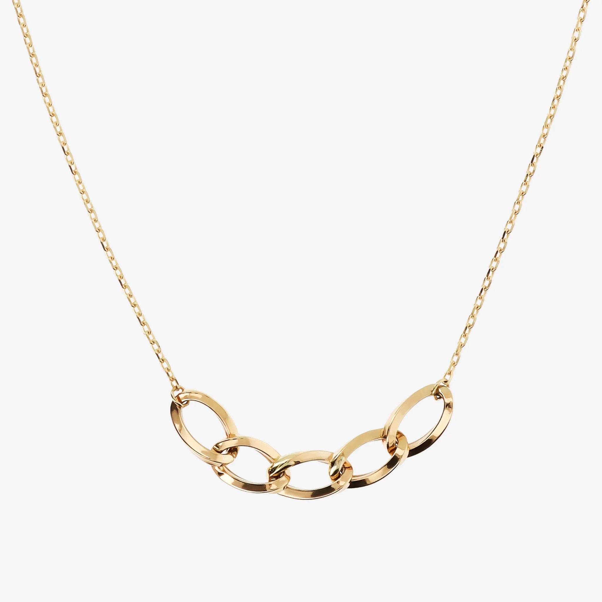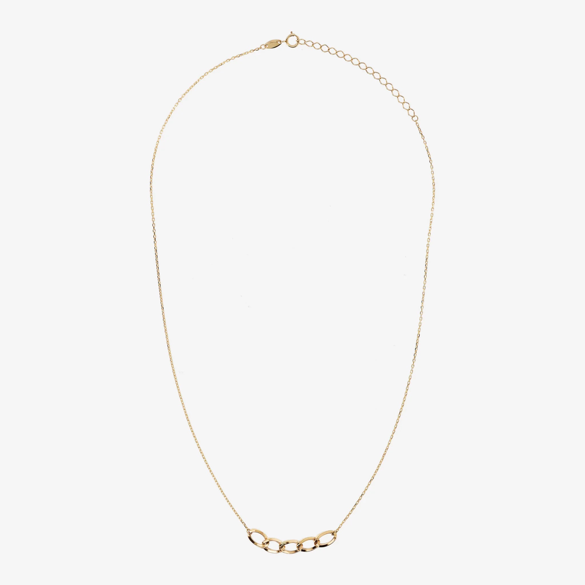 Collana in Oro 375/1000 con catena forzatina e maglie centrali dal design squadrato. Finitura lucida. Chiusura a moschettone. Lunghezza 40+5 cm di estensione.