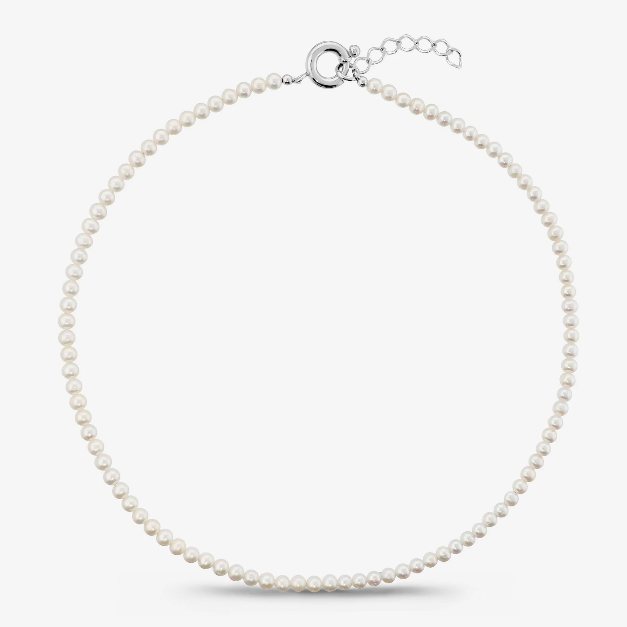 Collana Girocollo in Argento 925 placcato Oro Bianco 18Kt con Perle Bianche d'Acqua Dolce Ø 4.5 mm