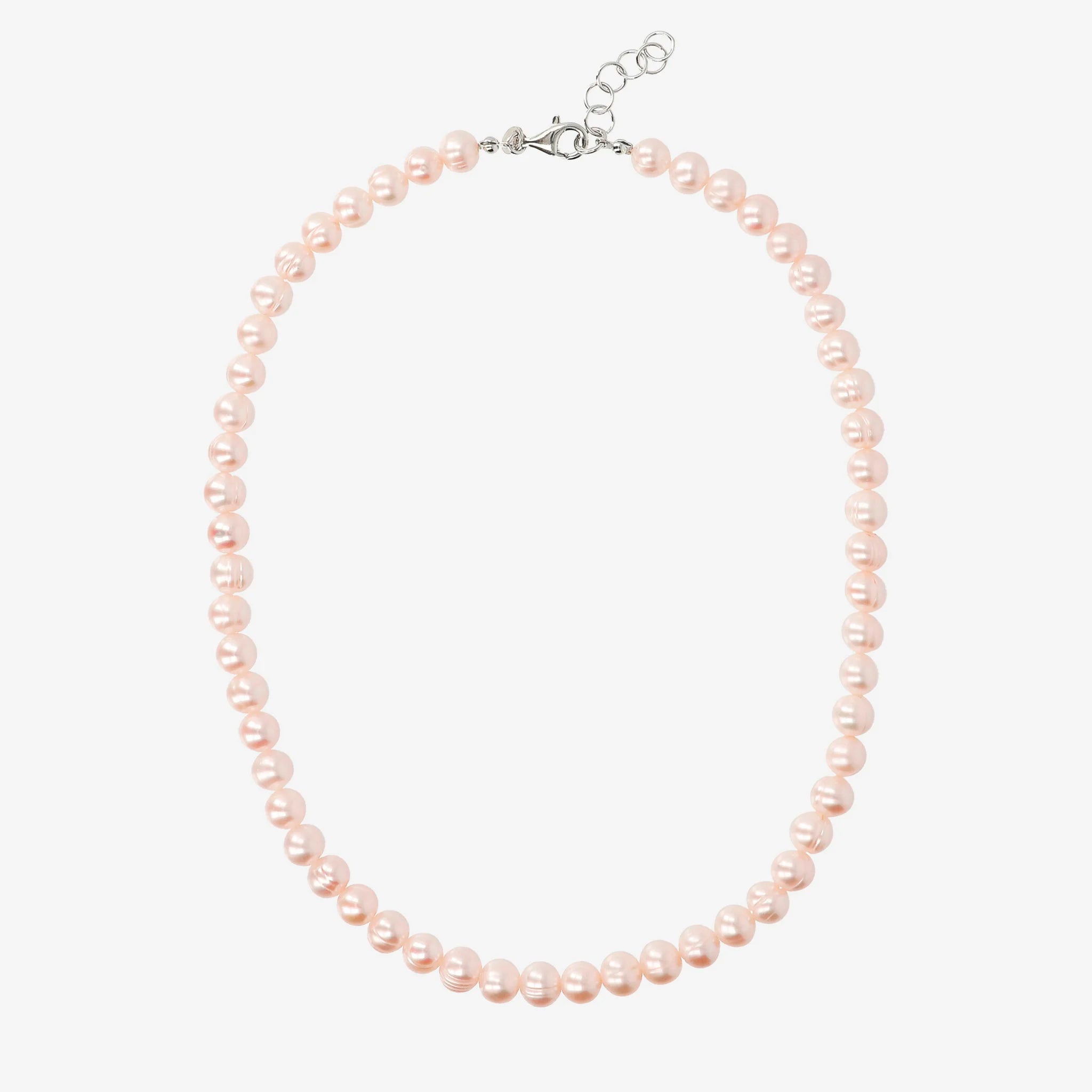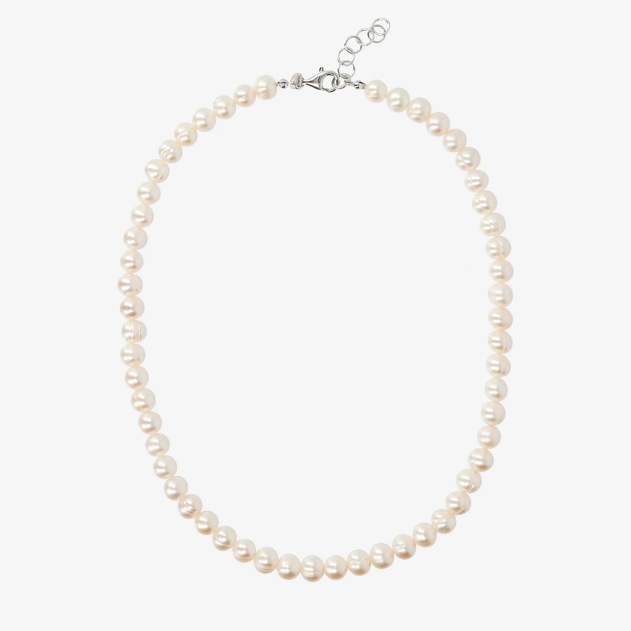 Collana Girocollo in Argento 925 placcato Oro Bianco 18Kt con Perle d'Acqua Dolce Ø 8/9 mm