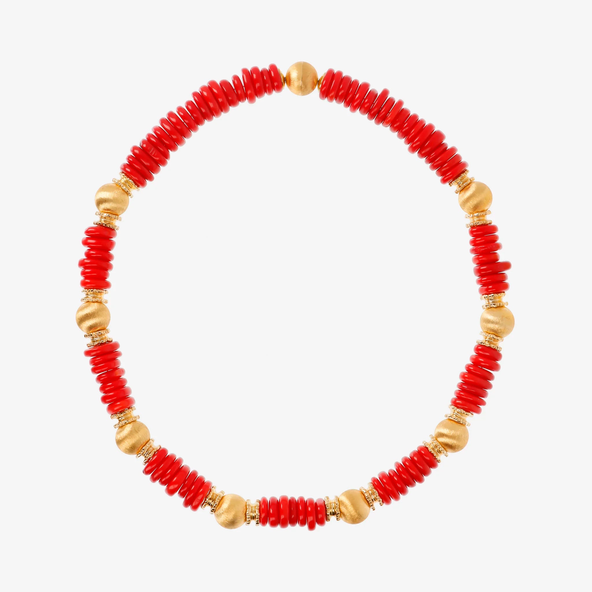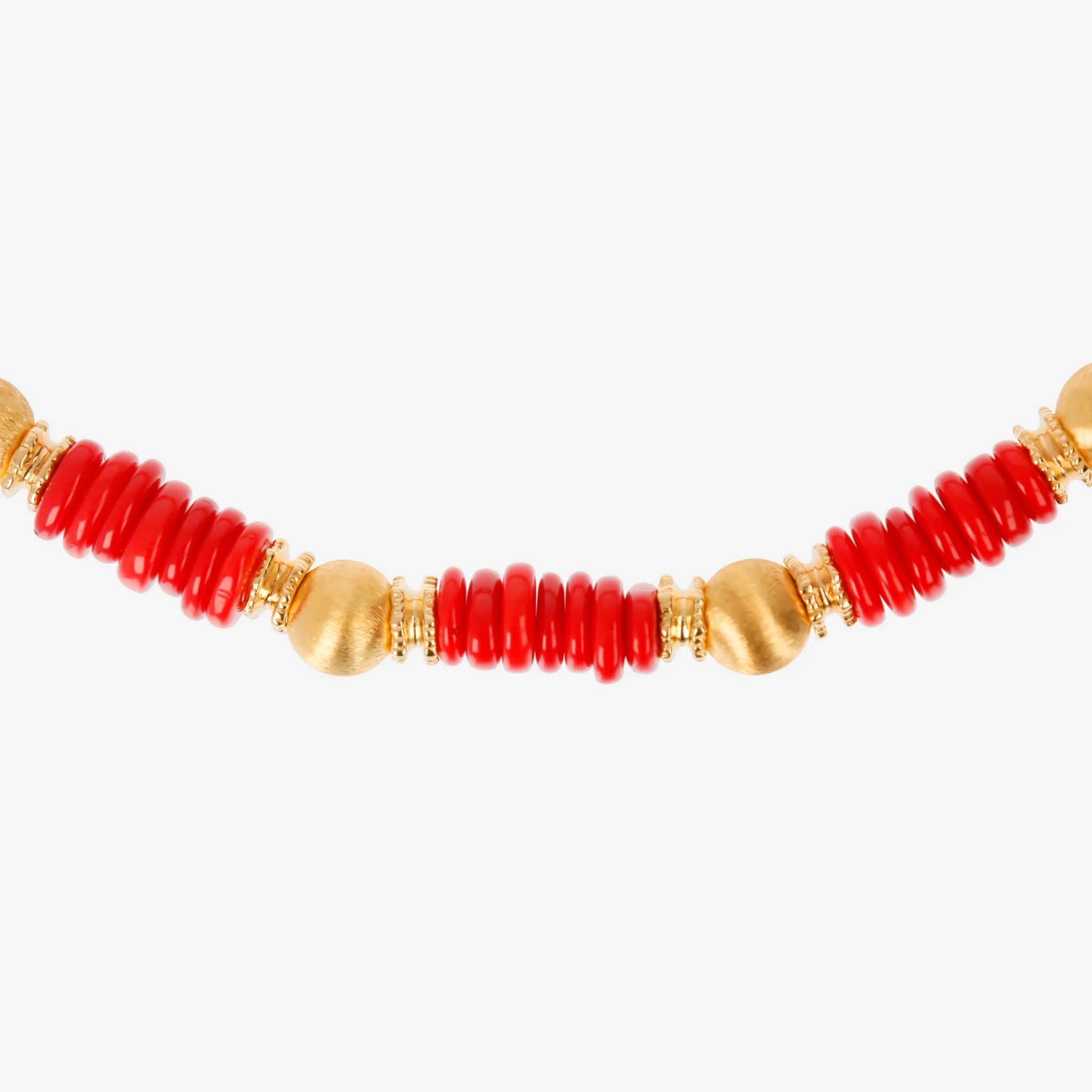 Collana Girocollo in Argento 925 placcato Oro Giallo 18Kt con Corallo Bambù e Bead Satinate