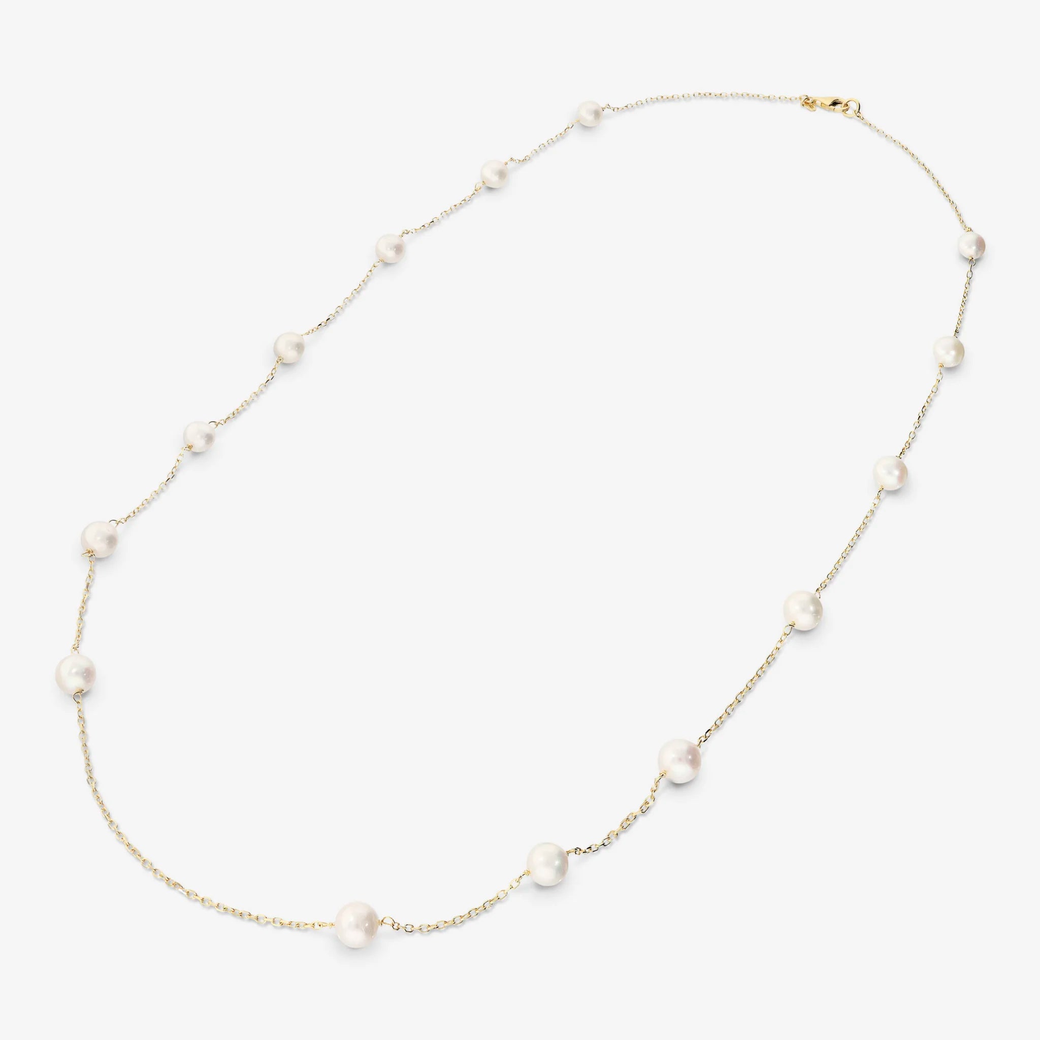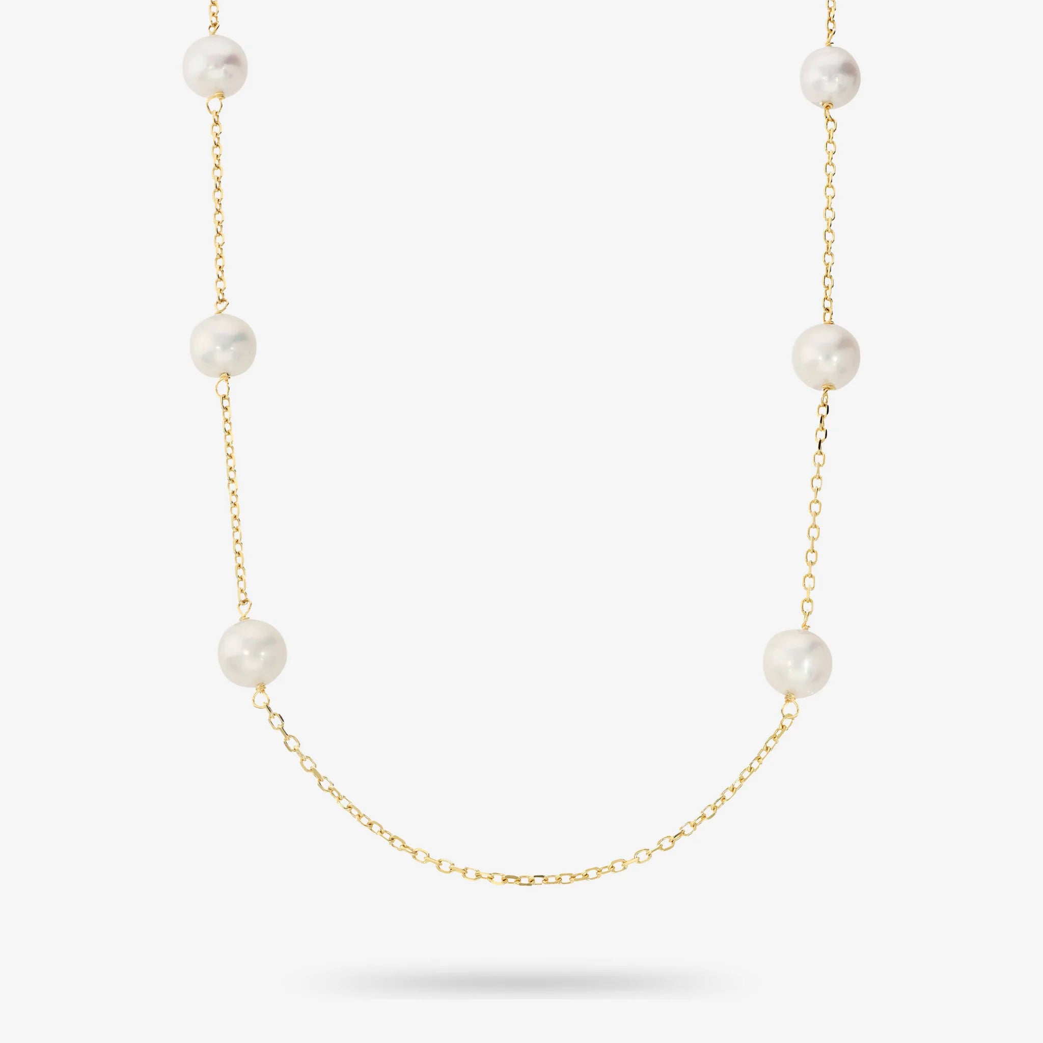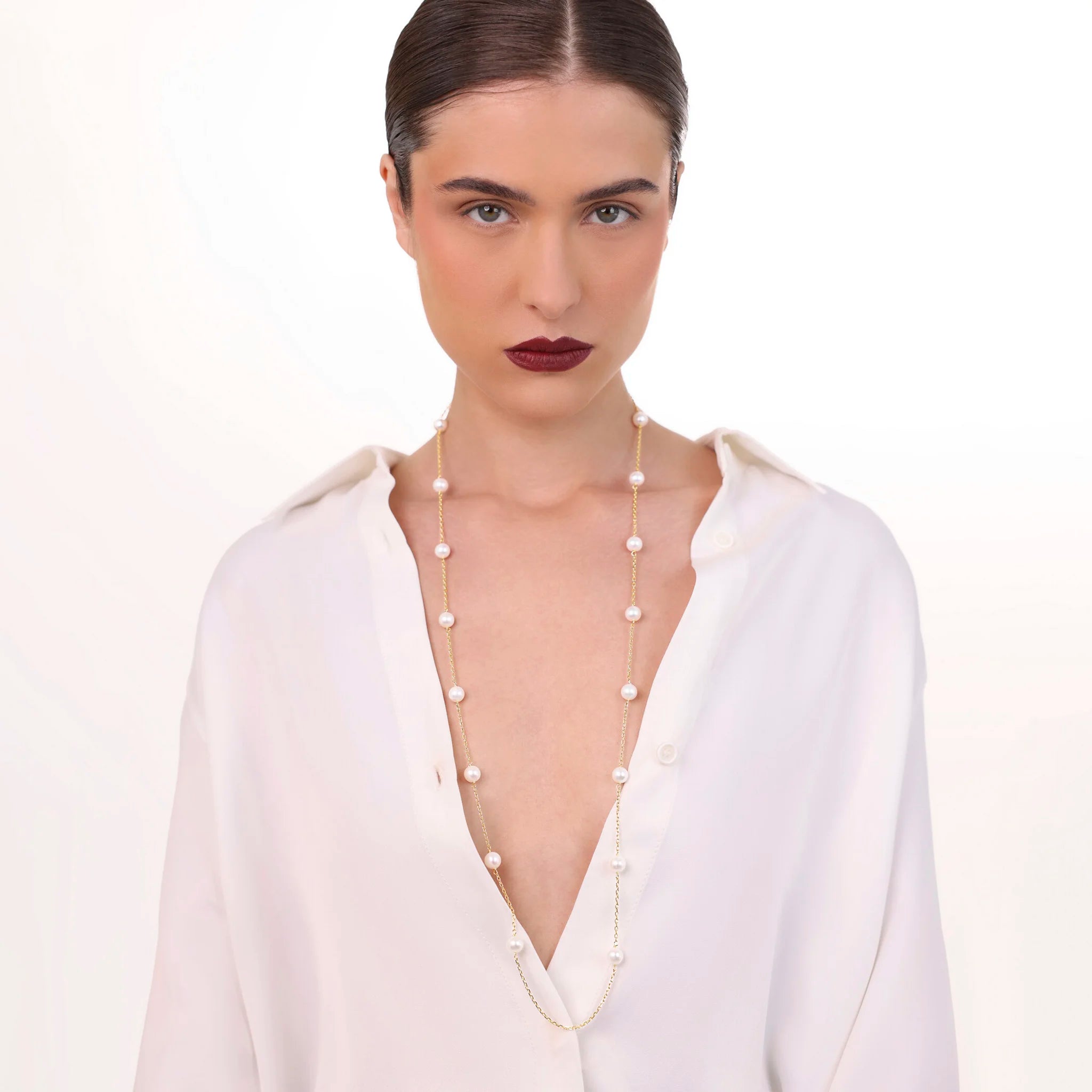 Collana Lunga in Argento 925 placcato Oro Giallo 18Kt con Perle Bianche d'Acqua Dolce Ø 8.5/9.5 mm