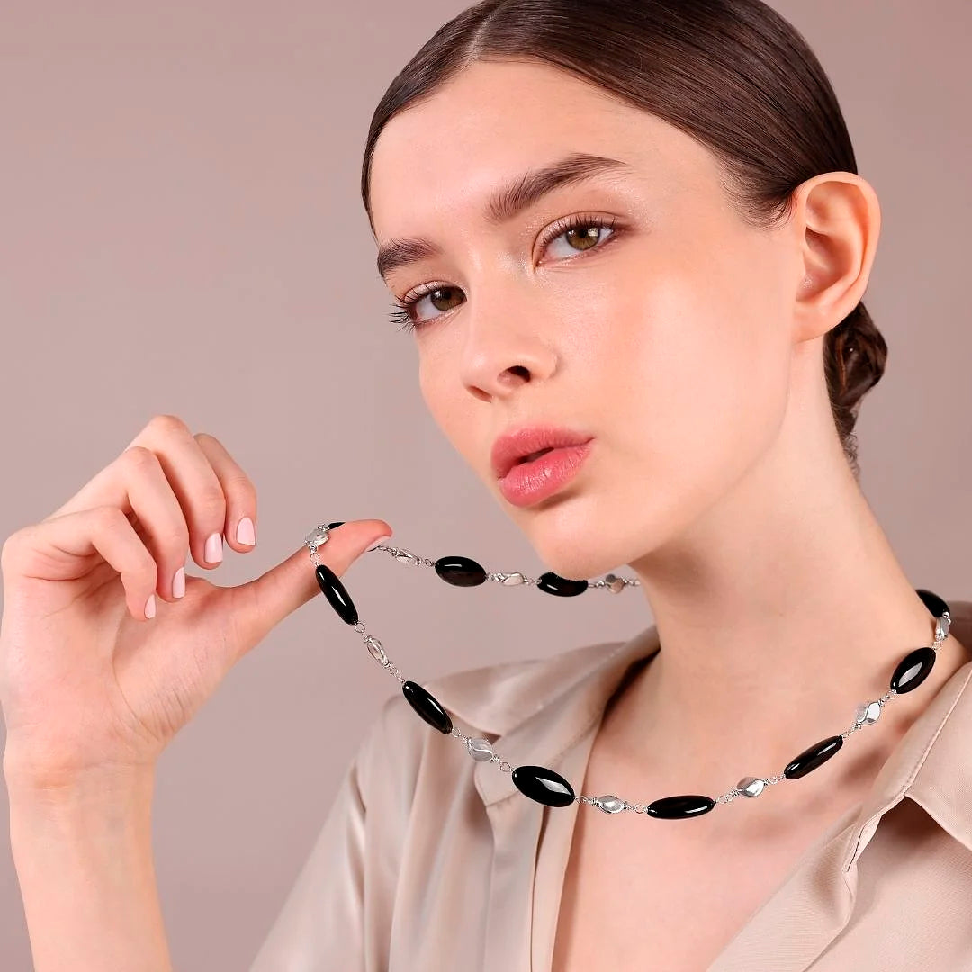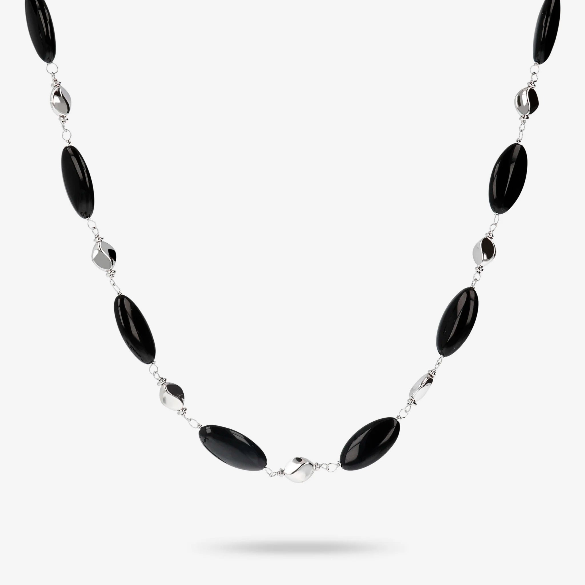 Collana Lunga in Argento 925 placcato Platino con Pepite Lucide e Pietre Naturali