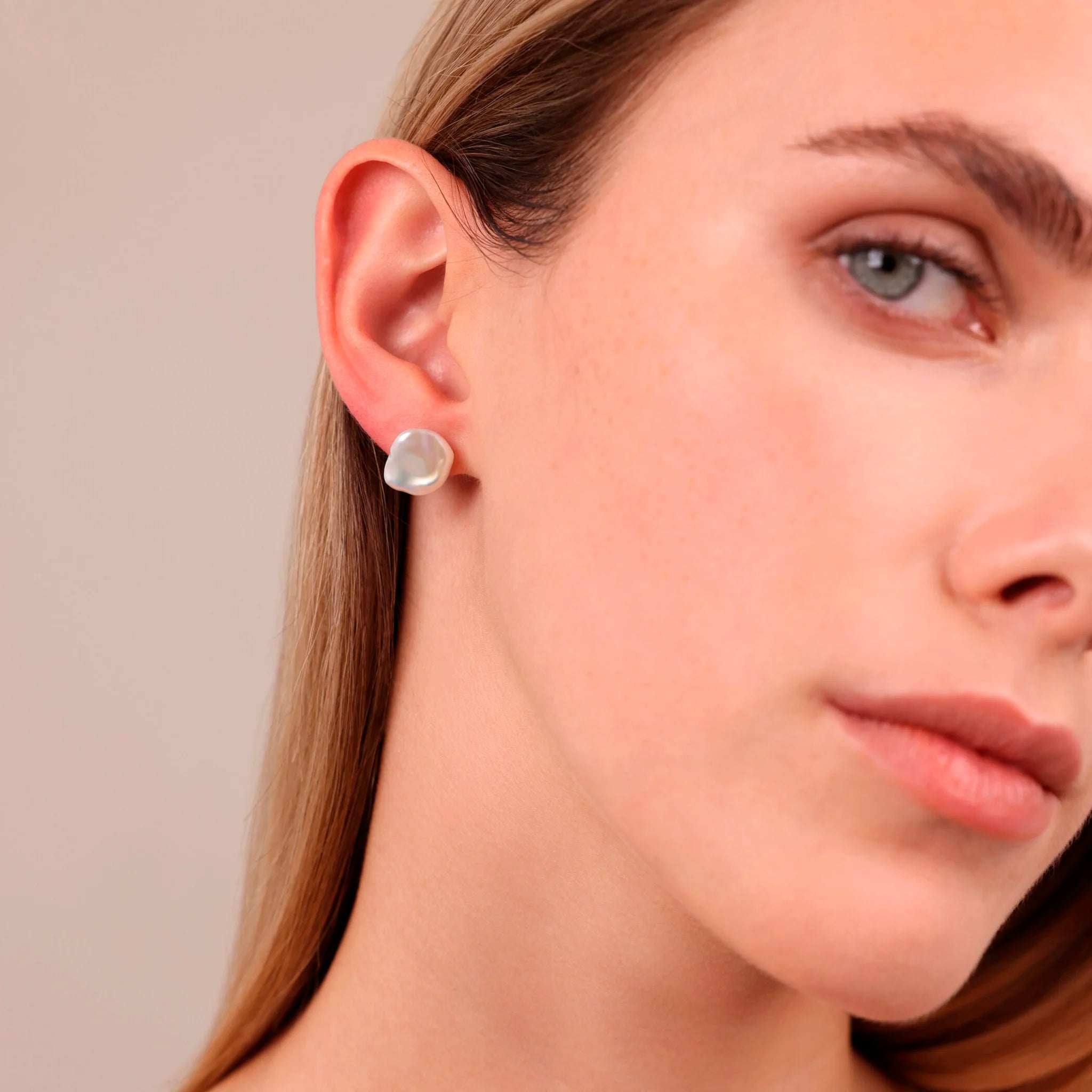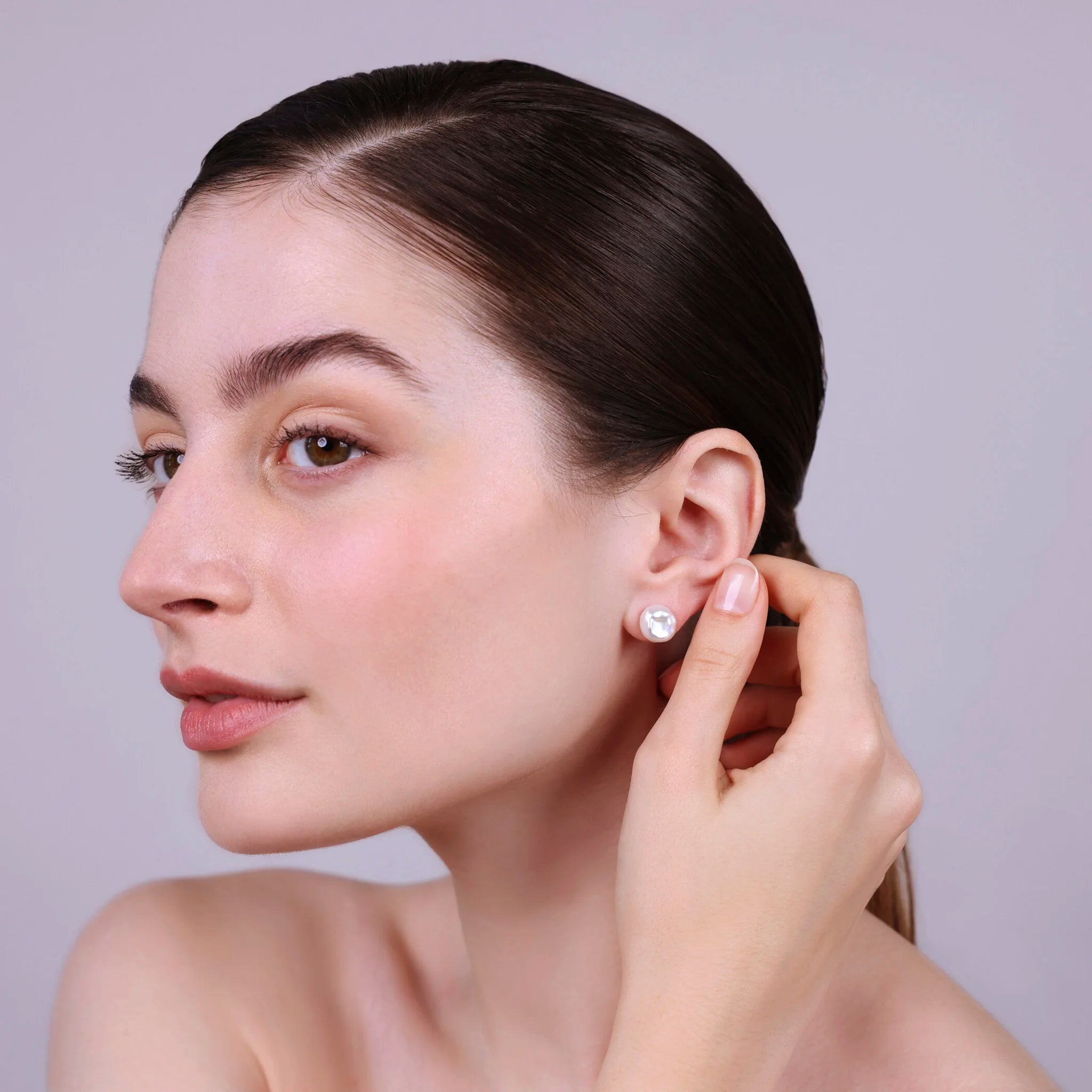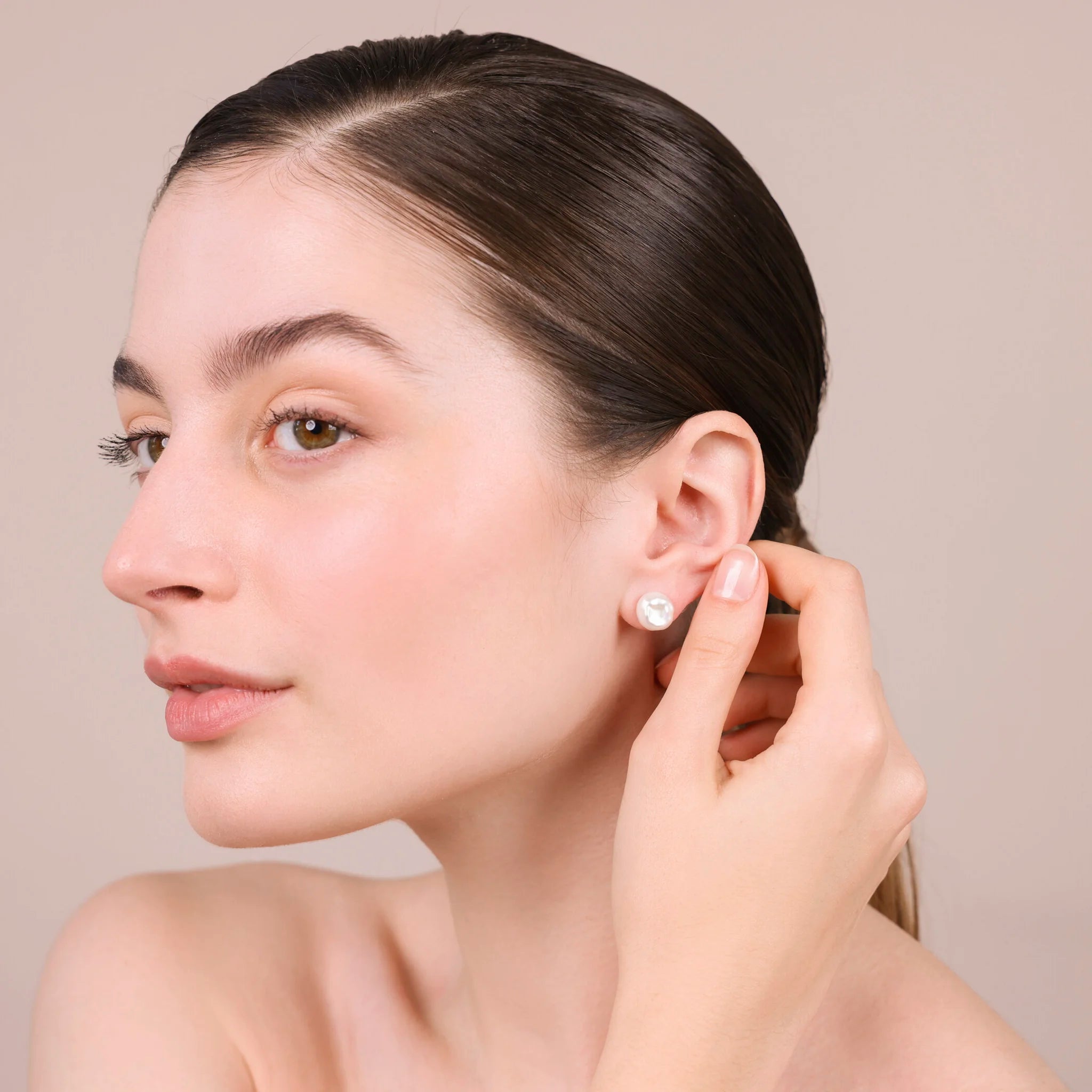 Orecchini a Bottone in Argento 925 placcato Oro 18Kt con Perle Keshi Bianche d'Acqua Dolce Ø 10 mm