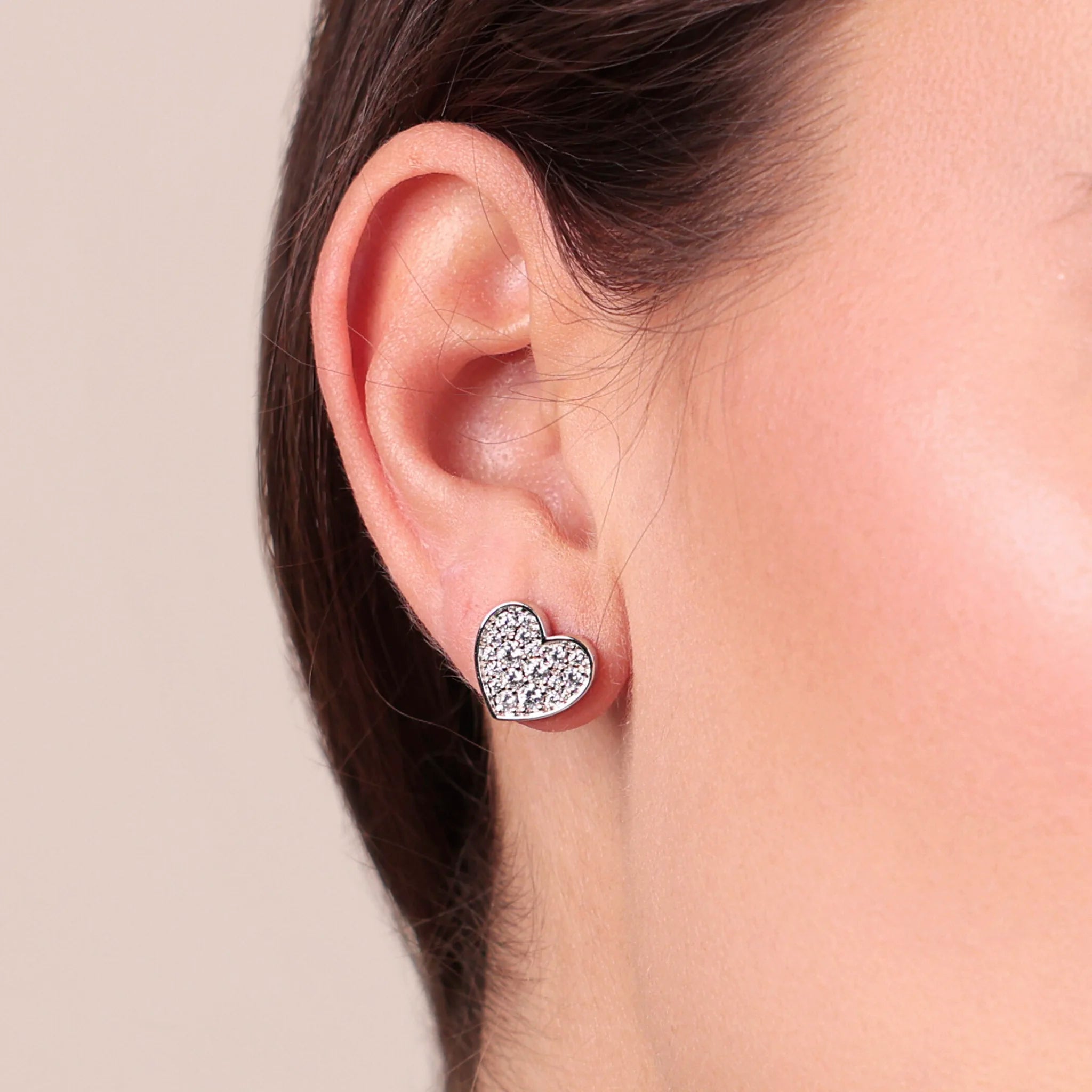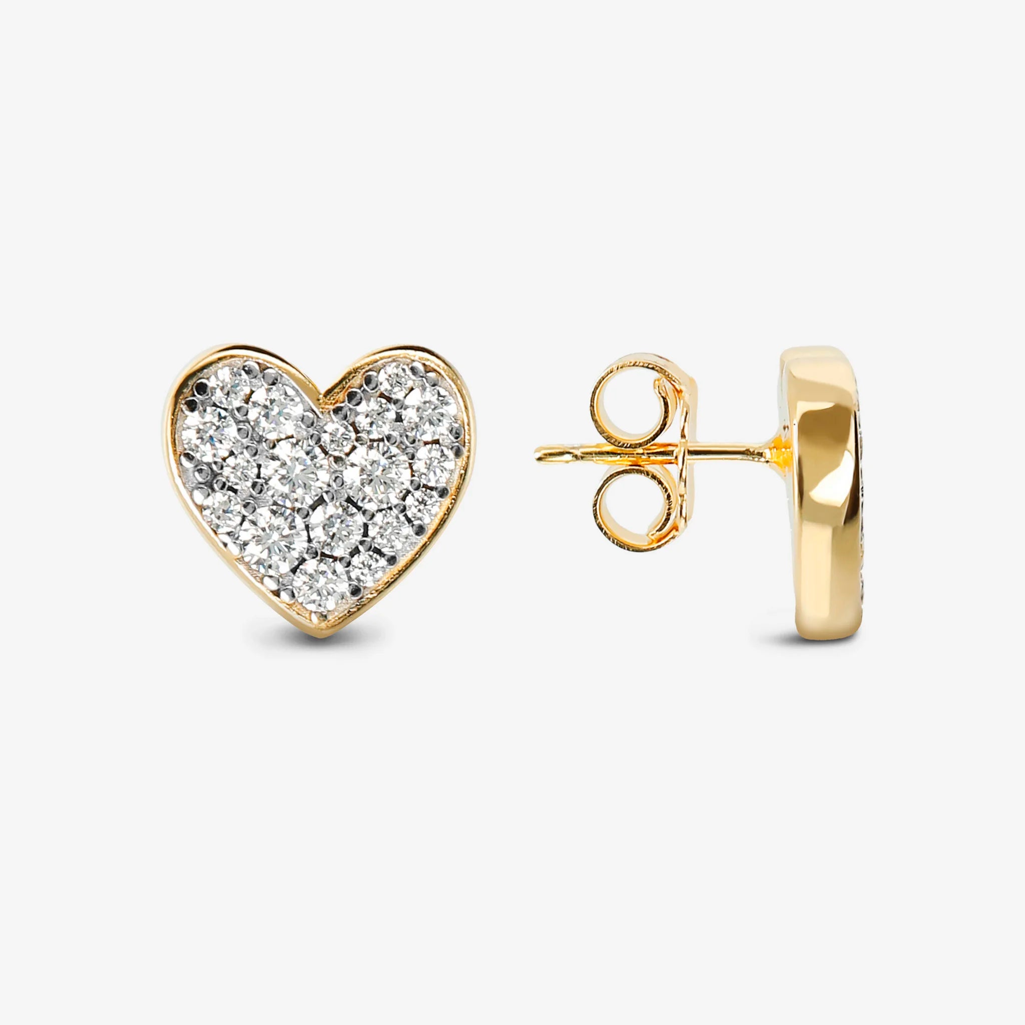 Orecchini a lobo in Argento 925 placcato Oro giallo 18kt. Forma cuore con pavé di cubic zirconia, qualità 'Luminosa', pari a 0.86ct. Chiusura a perno e farfallina.