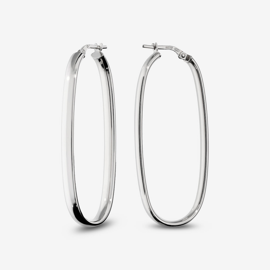 Orecchini Ovali Allungati Large in Argento 925 placcato Platino