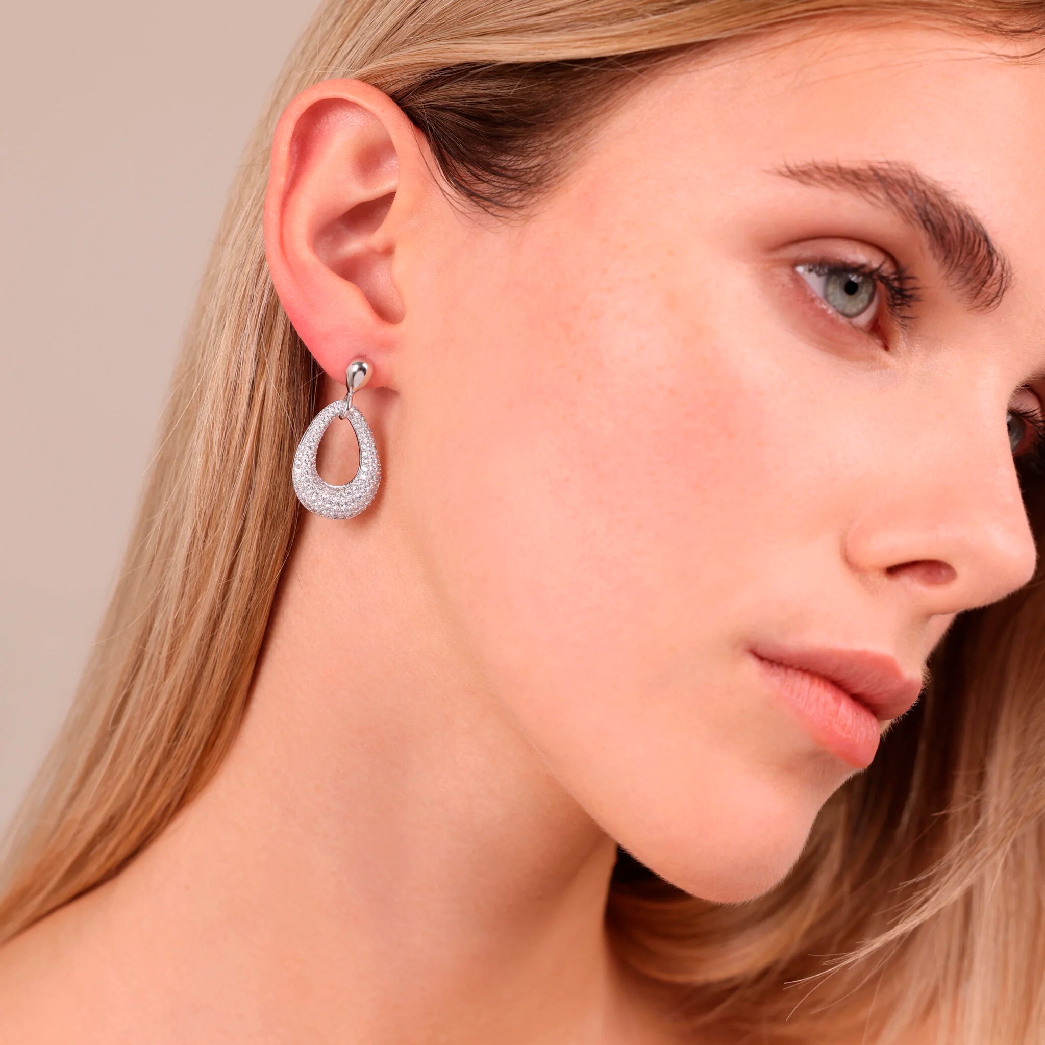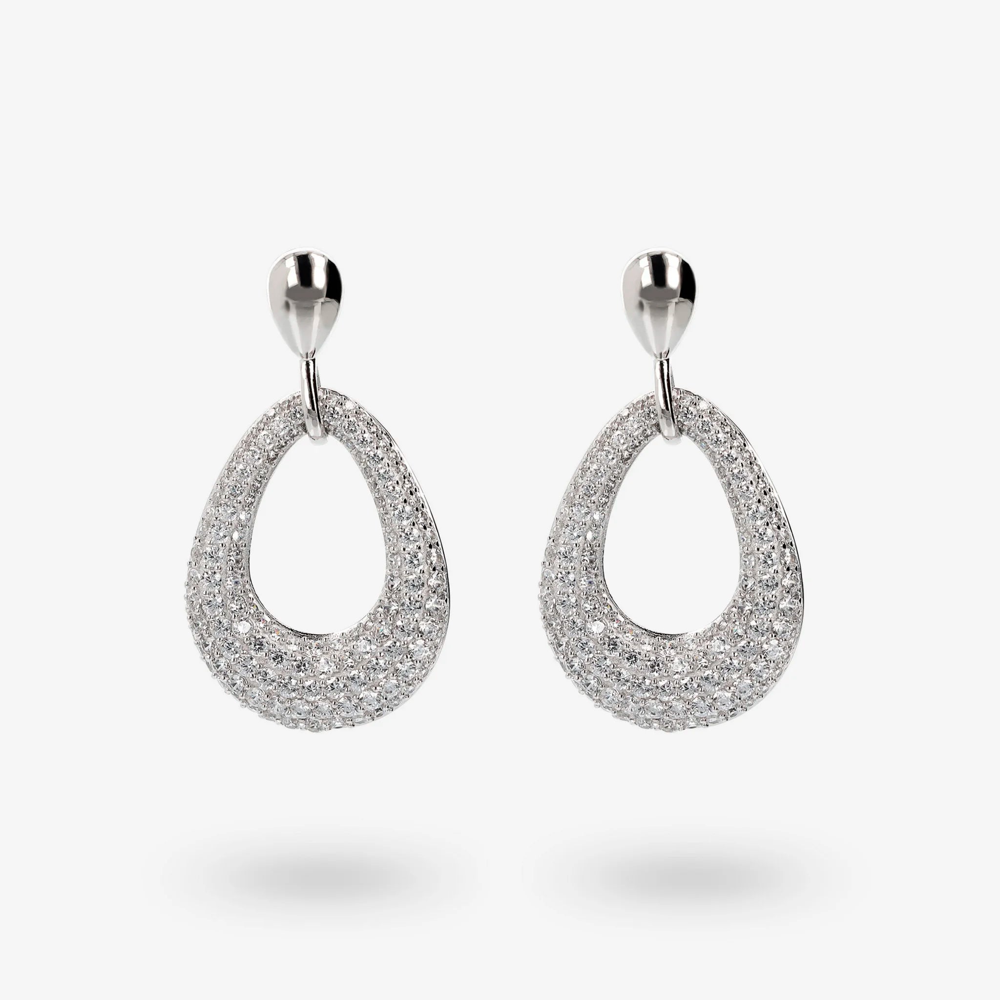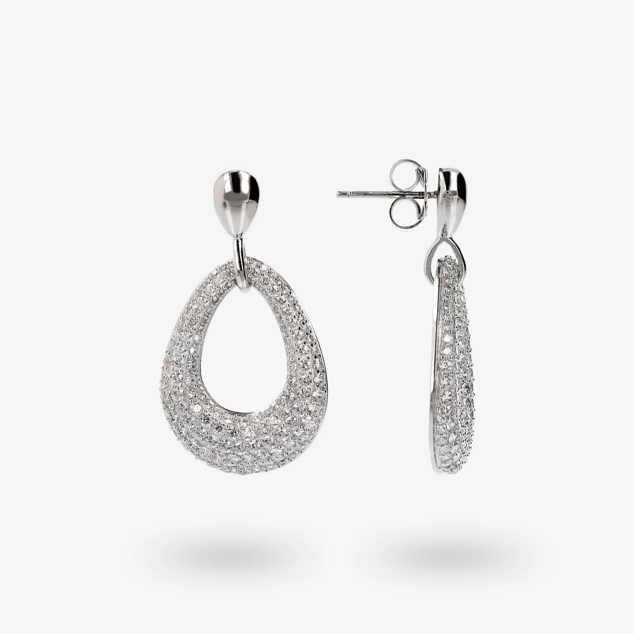 Orecchini Pendenti a Goccia in Argento 925 placcato Platino con Pavé di Cubic Zirconia