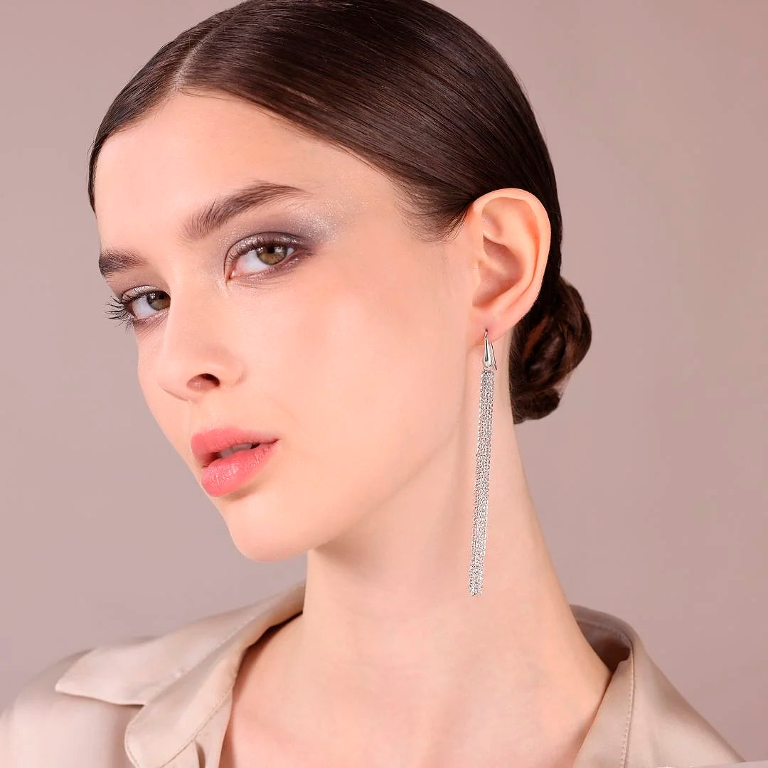 Orecchini Pendenti Multifilo in Maglia Brillantina in Argento 925 placcato Platino